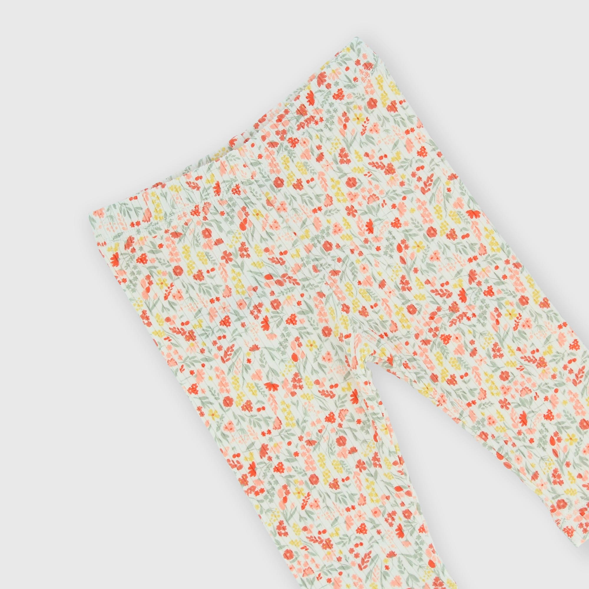 Gerippte Leggings mit elastischem Bund. Allover-Blumenprint