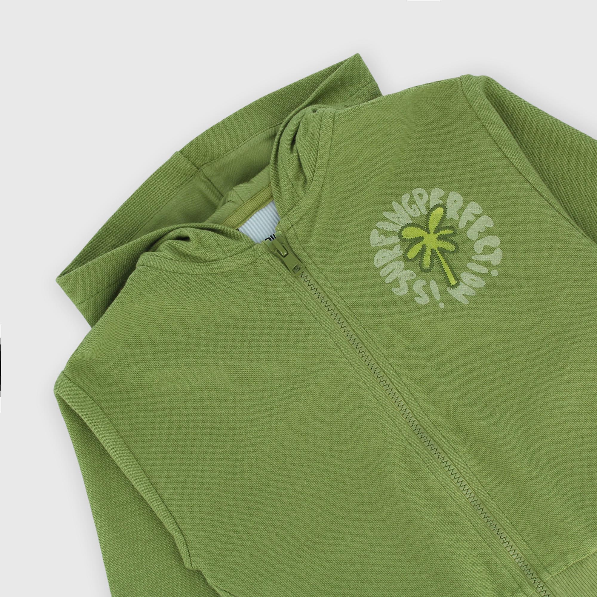 Offenes Kapuzensweatshirt. Reißverschluss auf der Vorderseite. Verdeckte Taschen. Kleiner Druck mit Stickerei auf der Brust. Gerippte Bündchen und Saum.