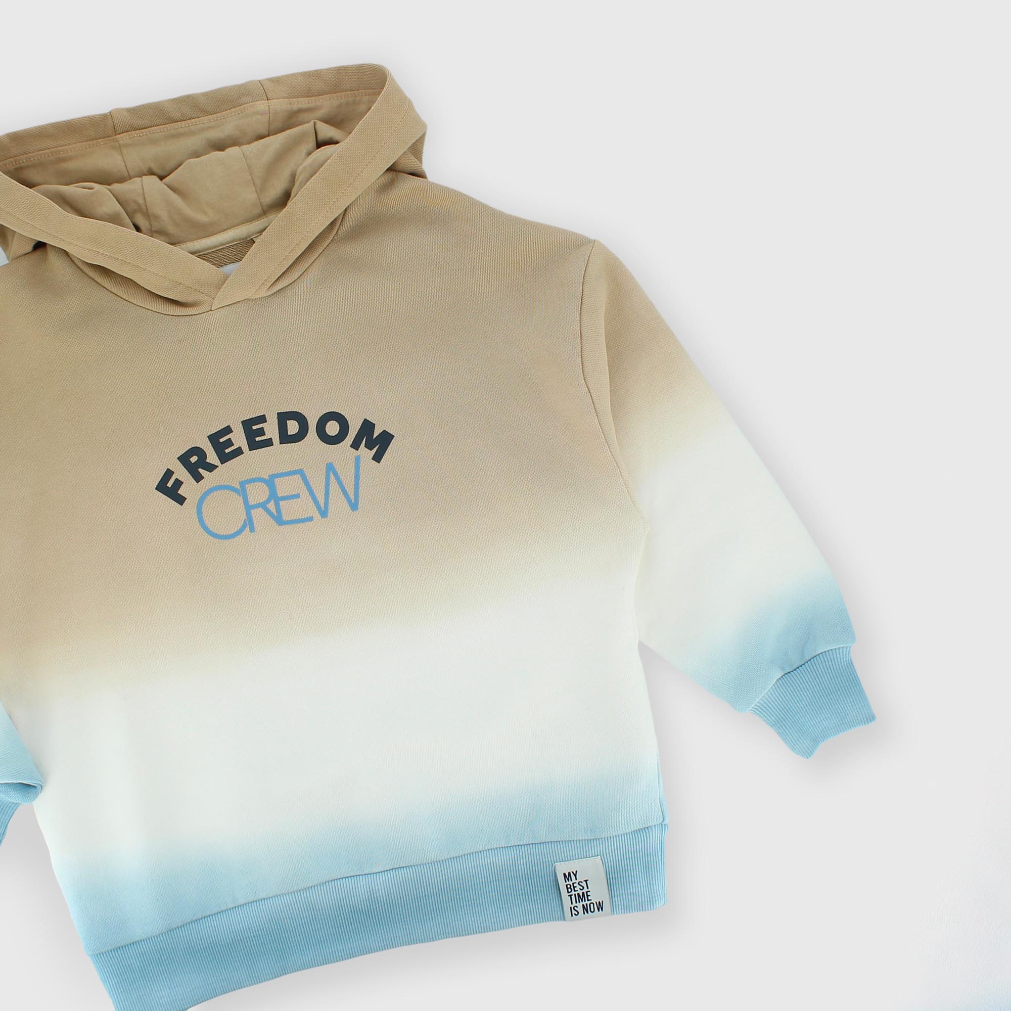 Kapuzensweatshirt mit Farbverlauf. Schriftzug auf der Vorderseite. Gerippte Bündchen und Saum.