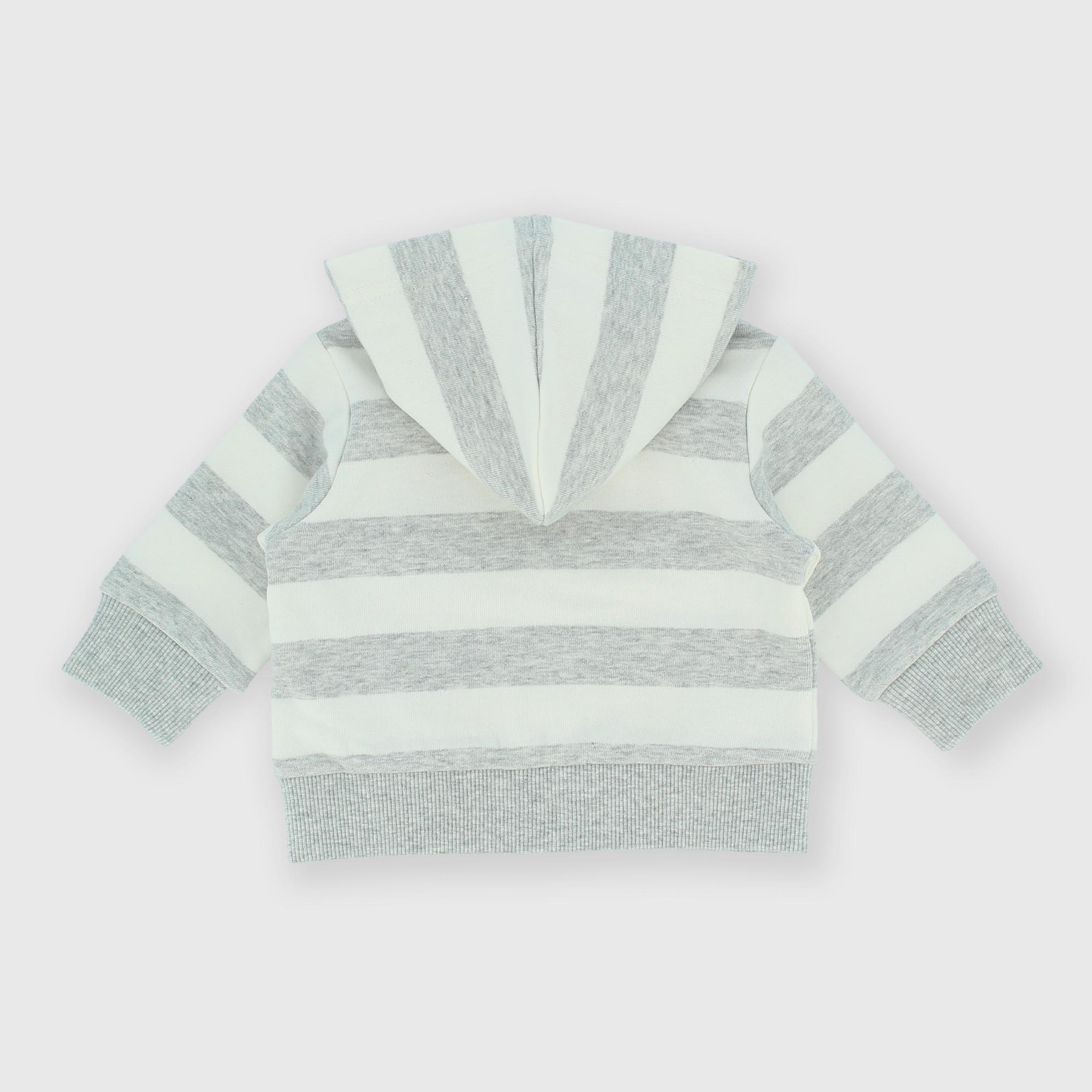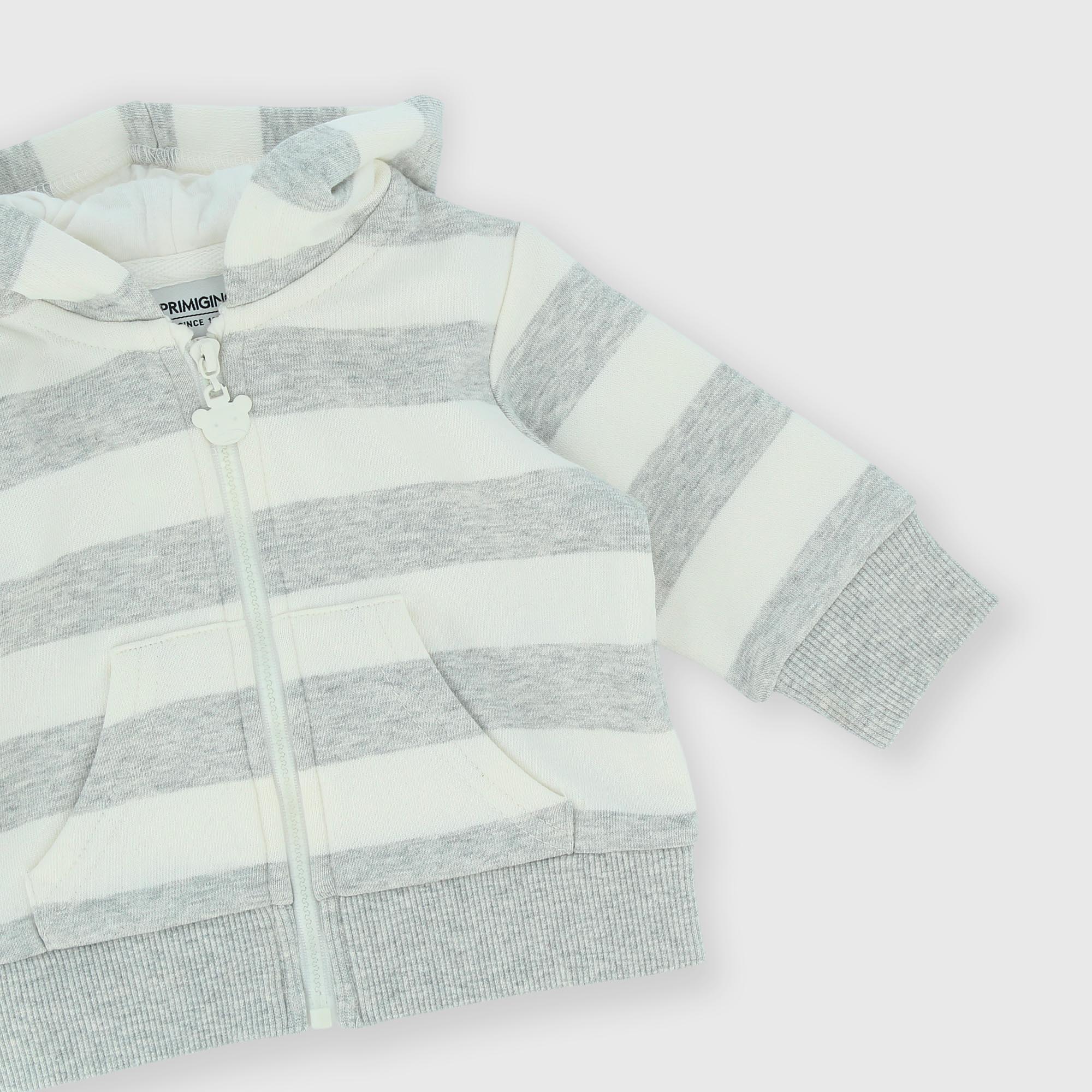 Offenes Kapuzensweatshirt. Reißverschluss vorne und Kängurutaschen. Gedruckte Linien. Gerippte Bündchen und Saum.