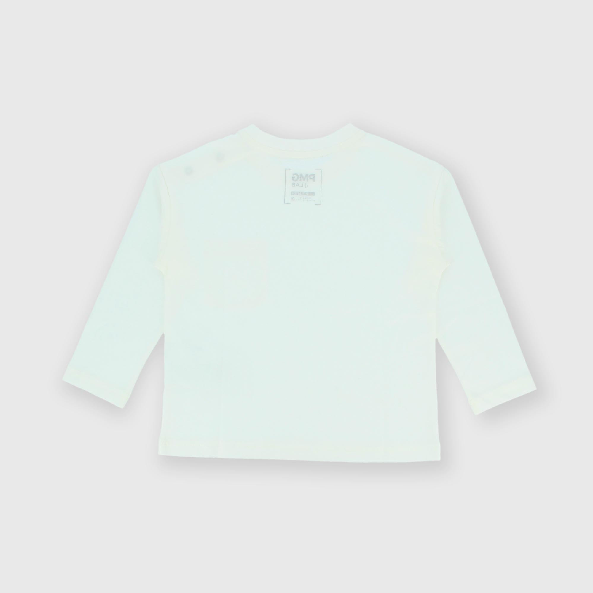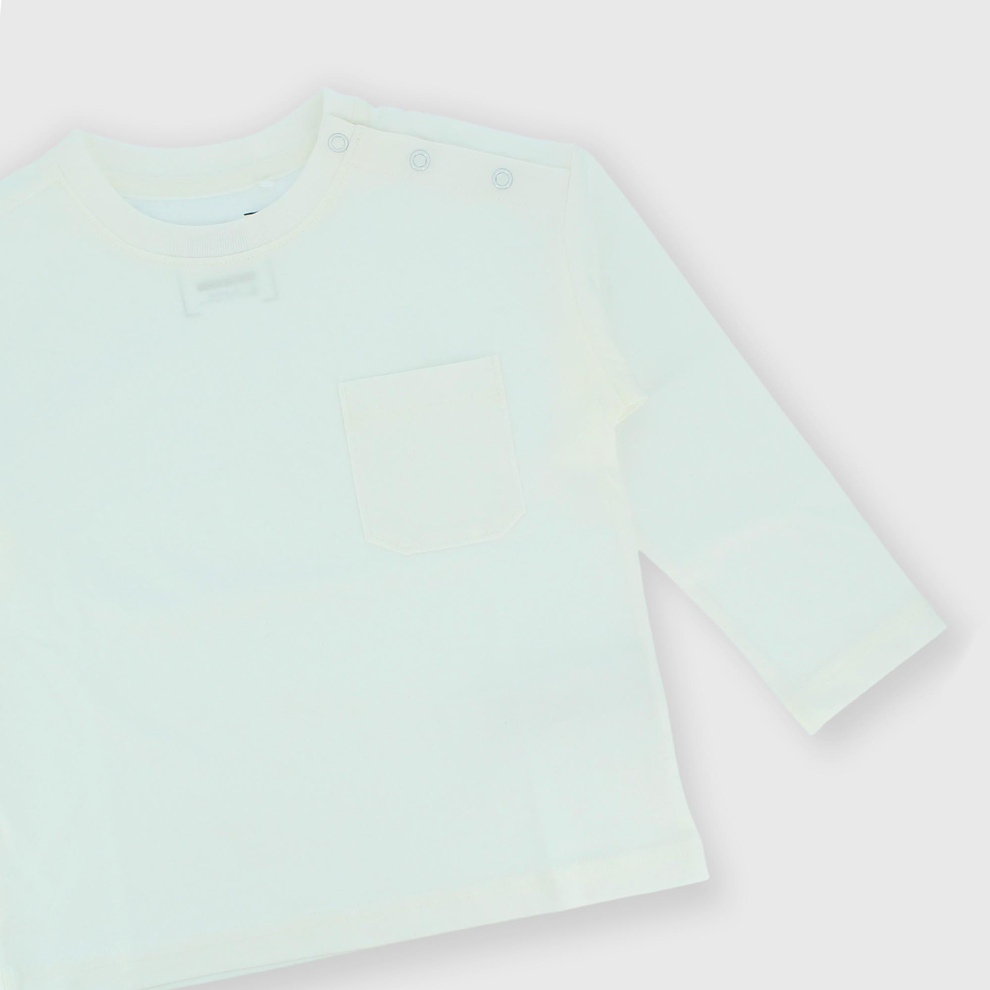 Jersey-T-Shirt, Rundhalsausschnitt, lange Ärmel. Druckknopfverschluss an der Schulter. Brusttasche.