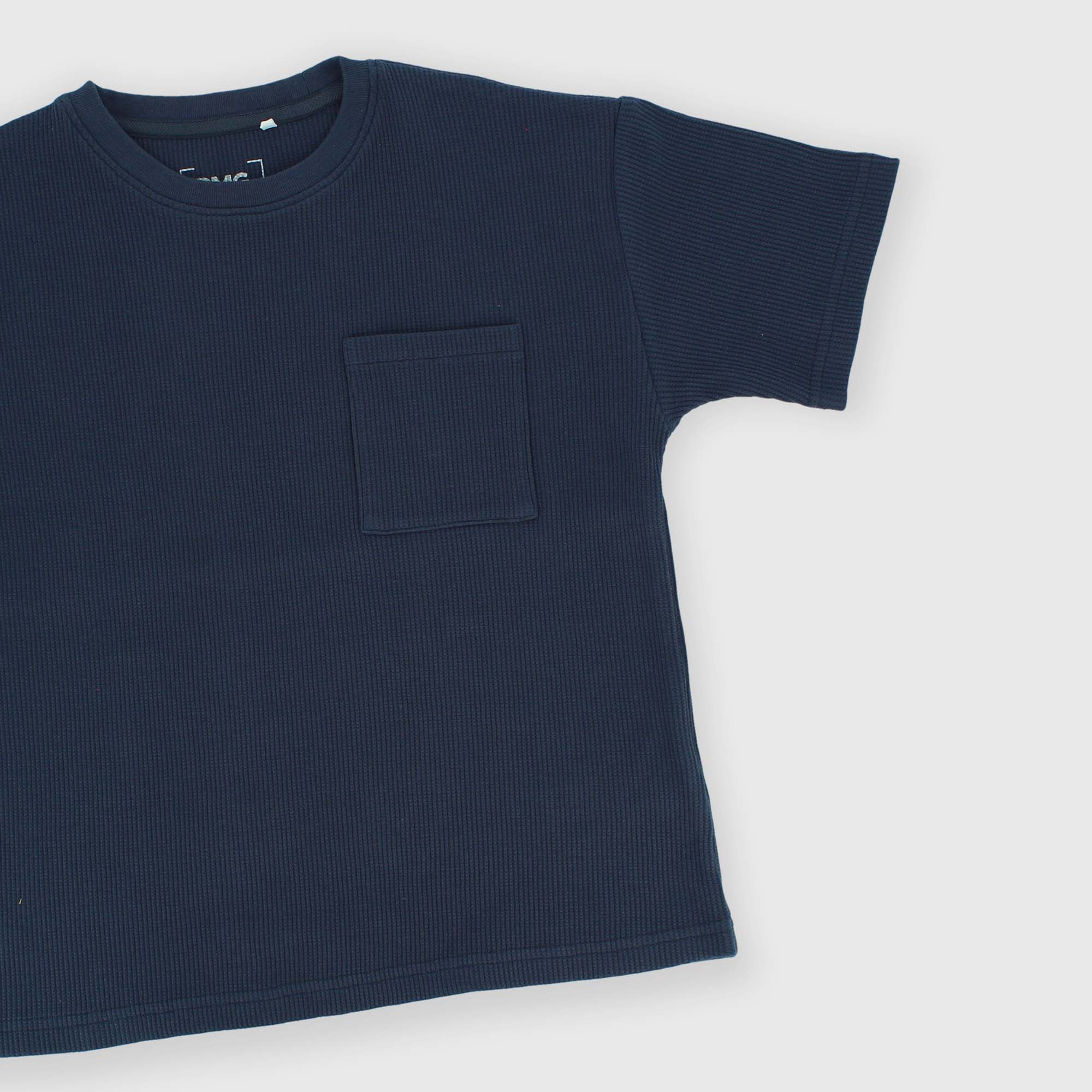 Kurzärmeliges T-Shirt mit Rundhalsausschnitt. Verarbeitung in Wabenoptik. Brusttasche.