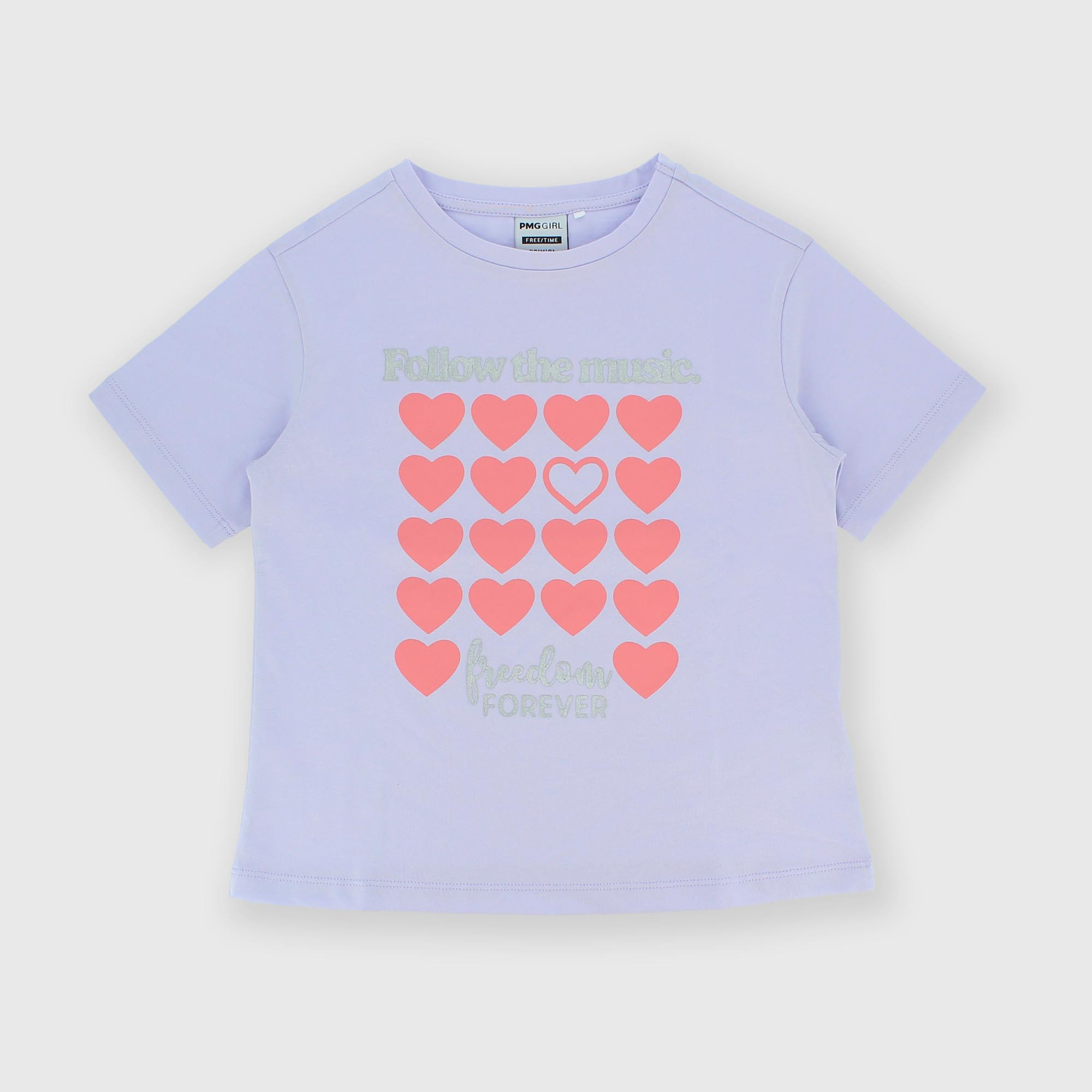 Jersey-T-Shirt, Rundhalsausschnitt, kurze Ärmel. Print mit Glitzerdetails auf der Vorderseite.