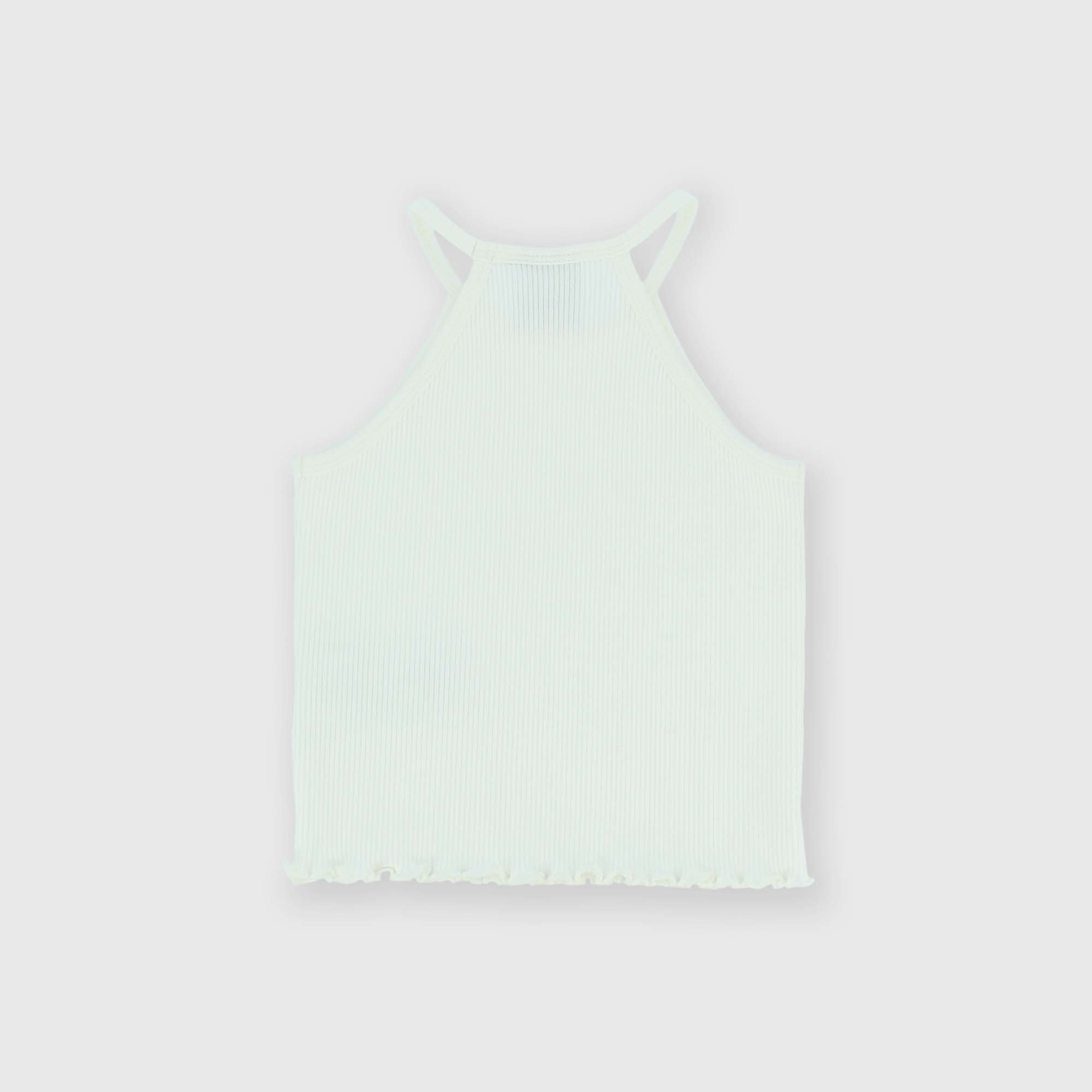 Geripptes Tanktop mit Neckholder-Ausschnitt und dünnen Trägern. Puppenstich-Finishes.