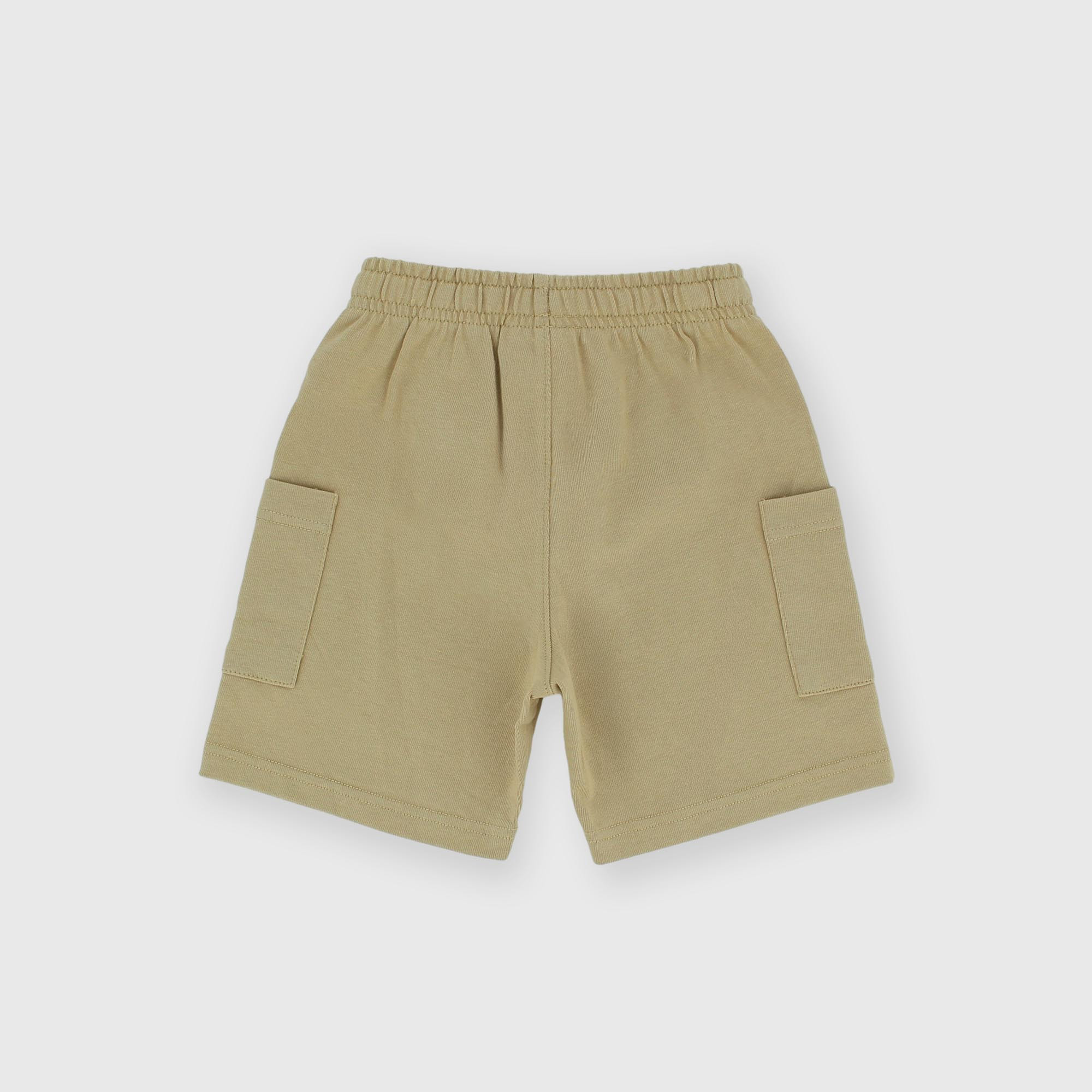 Bermudashorts aus schwerem Jersey mit elastischem Bund und Schnürsenkeln vorne. Aufgesetzte Seitentaschen und aufgedruckter Schriftzug auf der Vorderseite.