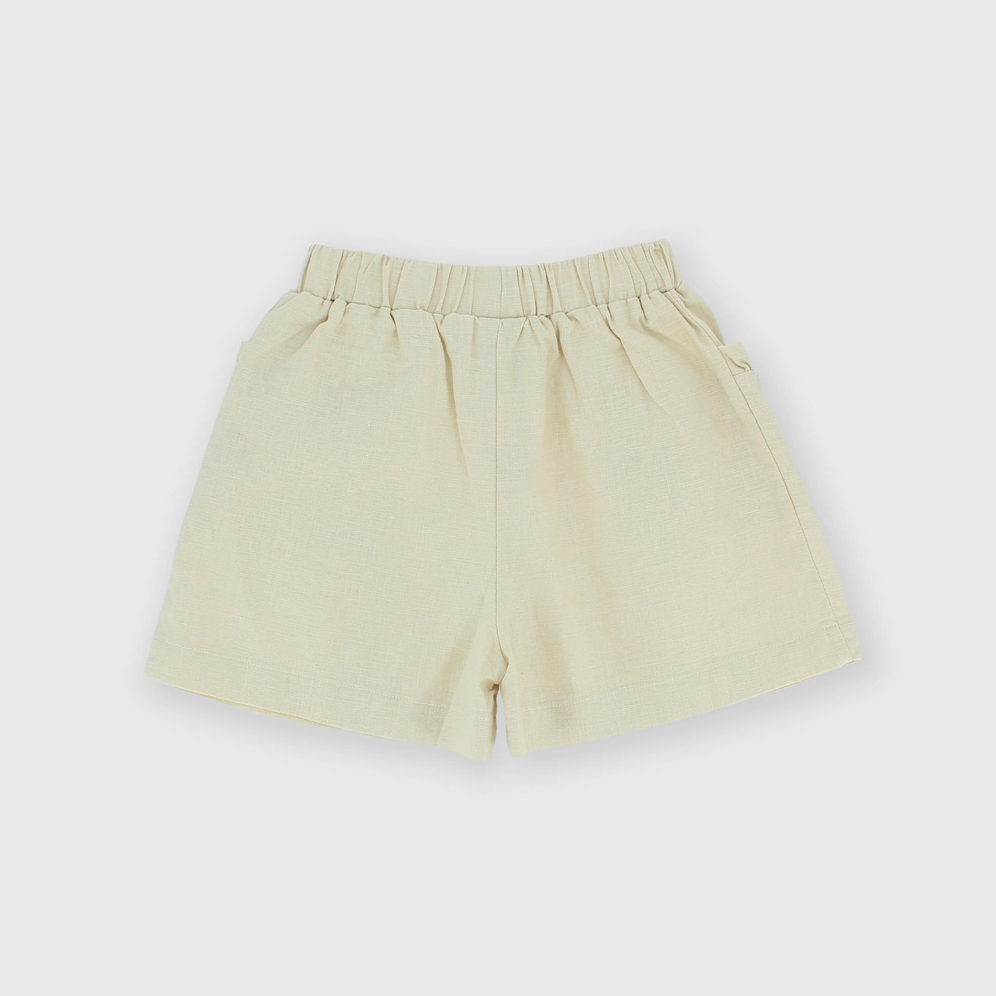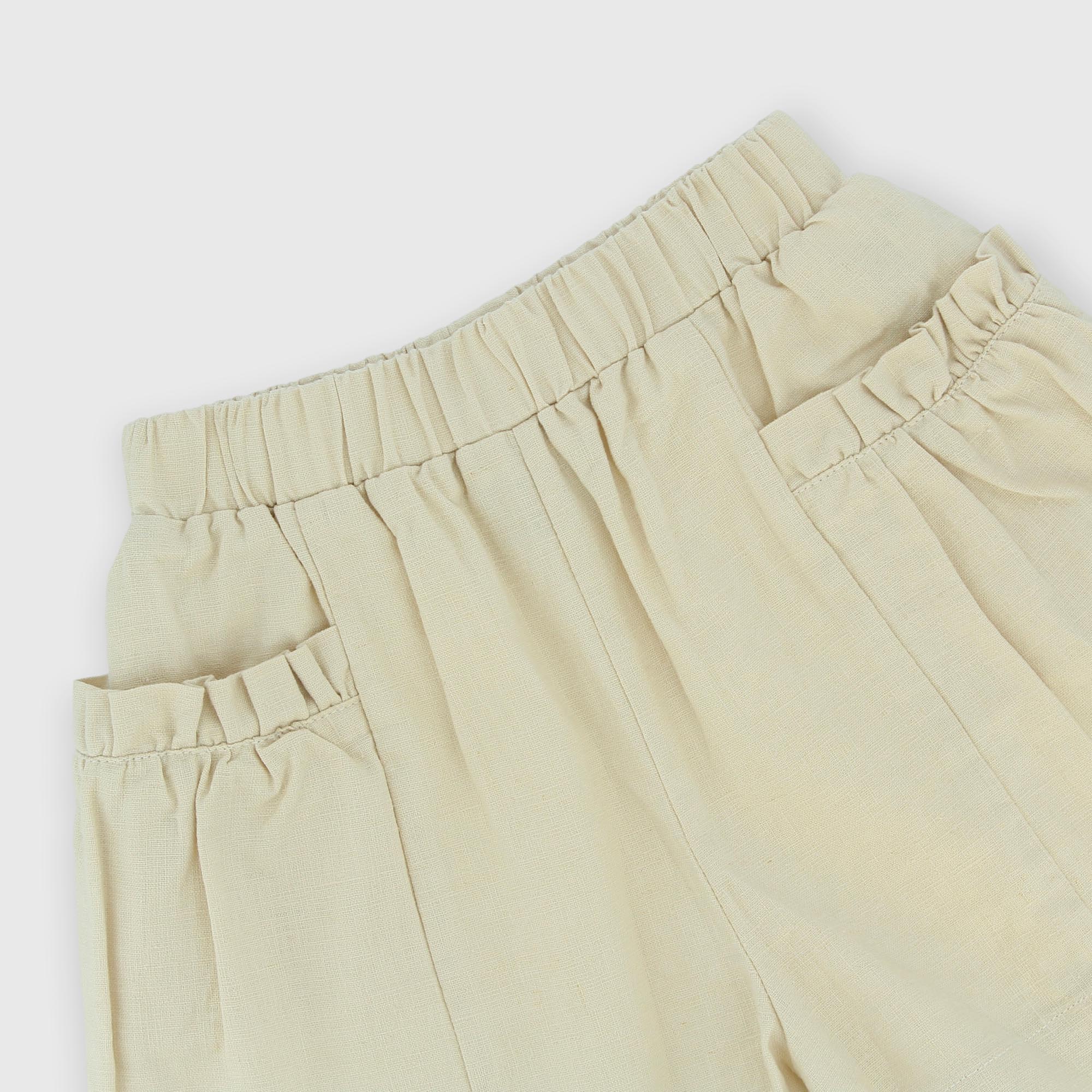 Shorts aus Baumvolle und Leinen mit elastischem Bund. Seitentaschen mit aufgesetzten Volants.