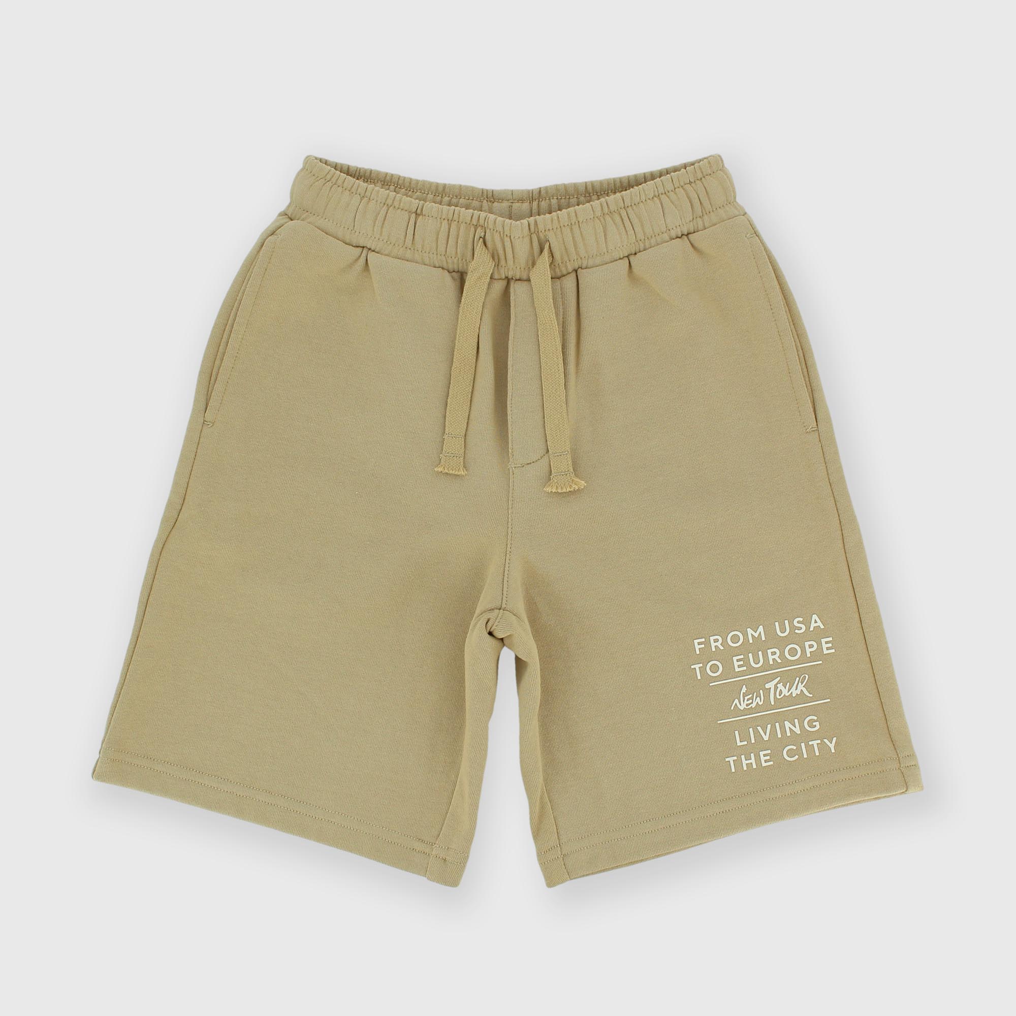 Bermudashorts aus Fleece mit elastischem Bund und Schnürsenkeln vorne. Verdeckte Seitentaschen. Kleingedrucktes mit Details in Gummierter Optik.