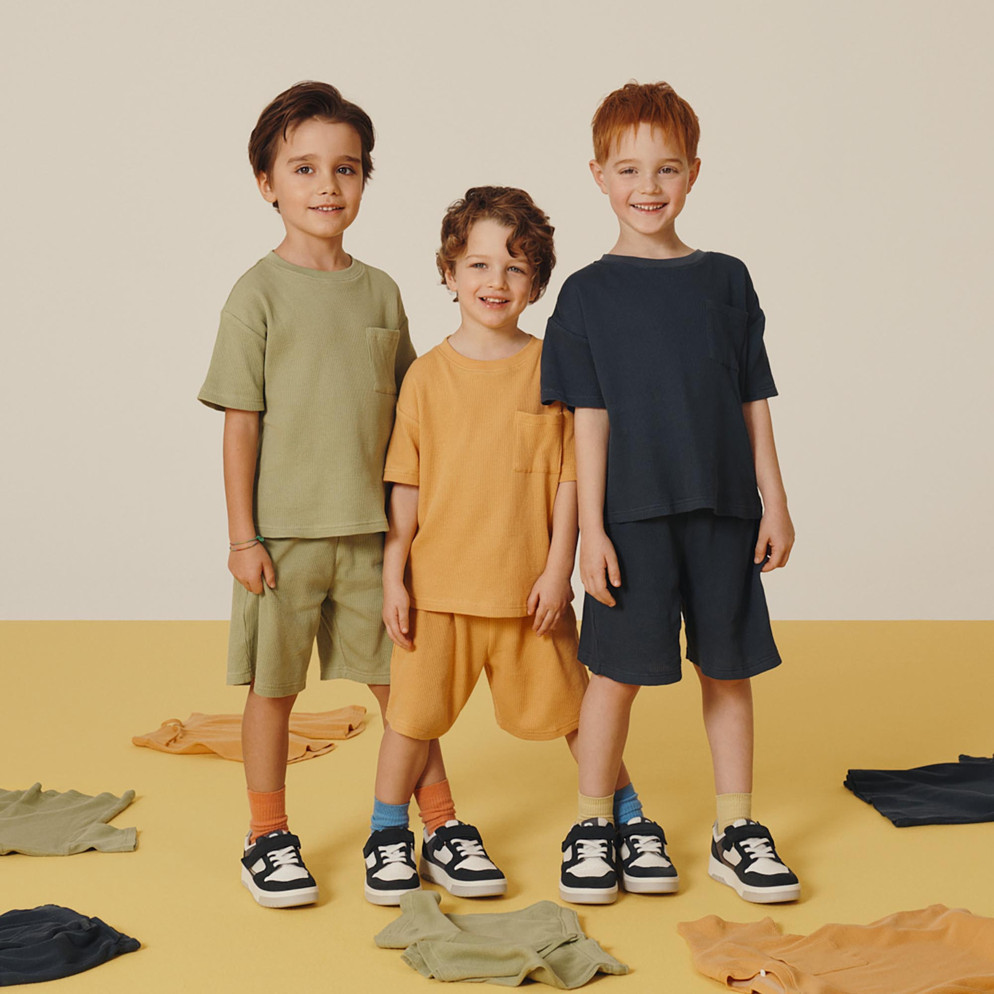 Bermudashorts mit elastischem Bund und Schnürsenkeln vorne. Verarbeitung in Wabenoptik.