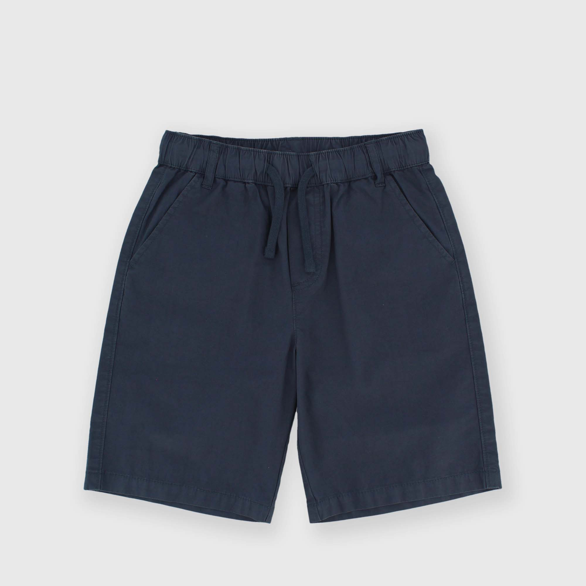 Bermudashorts aus stückgefärbtem Popeline mit elastischem Bund und Schnürsenkeln vorne. Französische Taschen auf der Vorderseite und Leistentaschen auf der Rückseite.