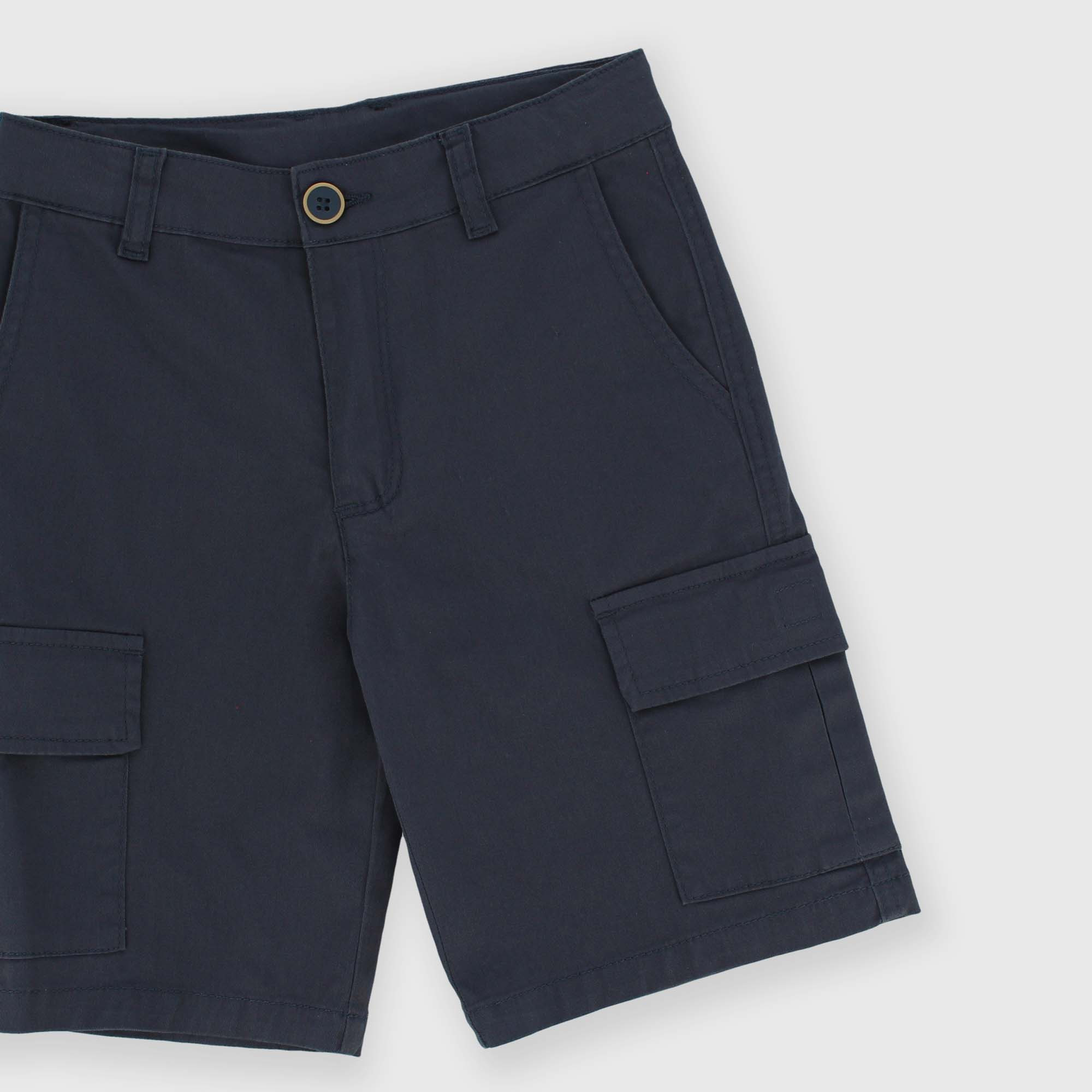 Bermudashorts aus Stretch-Gabardine mit verstellbarer Taille innen. Knopf- und Reißverschluss. Französische Taschen auf der Vorderseite, aufgesetzte Taschen mit Patte an den Seiten und Leistentaschen mit Patte auf der Rückseite.