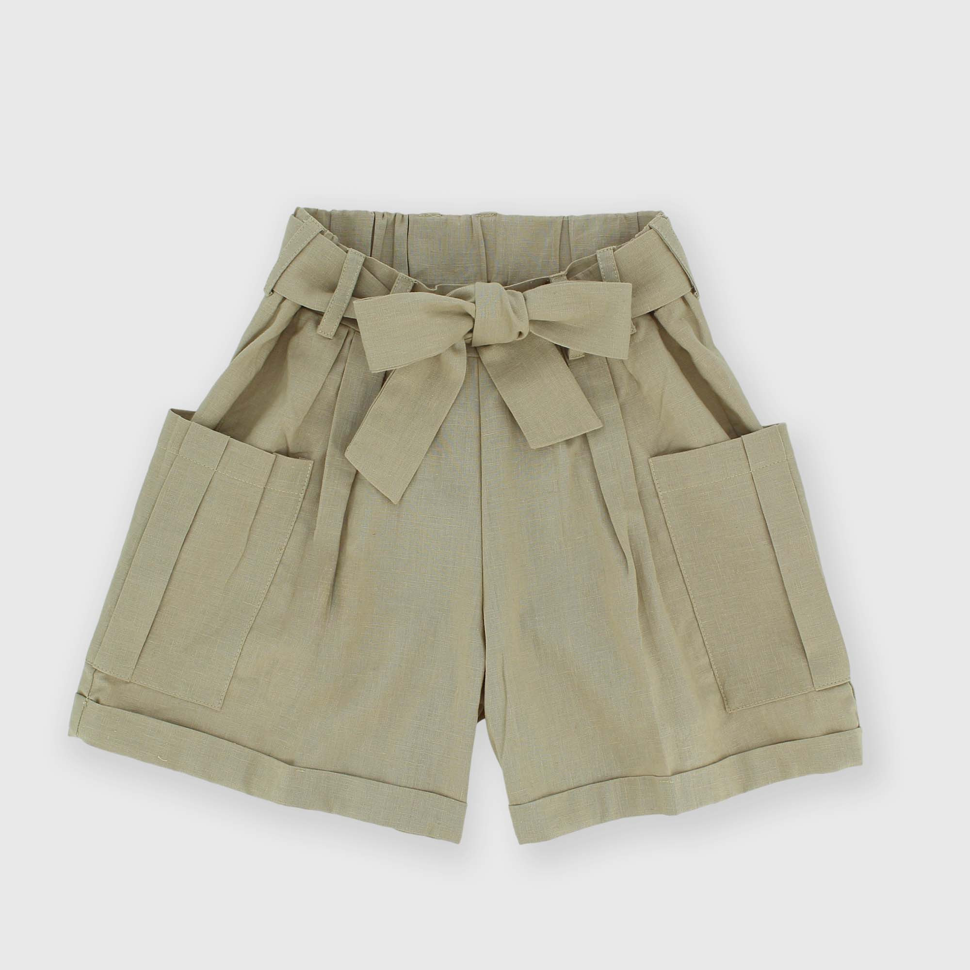 Shorts aus Baumvolle und Leinen mit elastischem Bund. Aufgesetzte Taschen an den Seiten. Passender Gürtel.