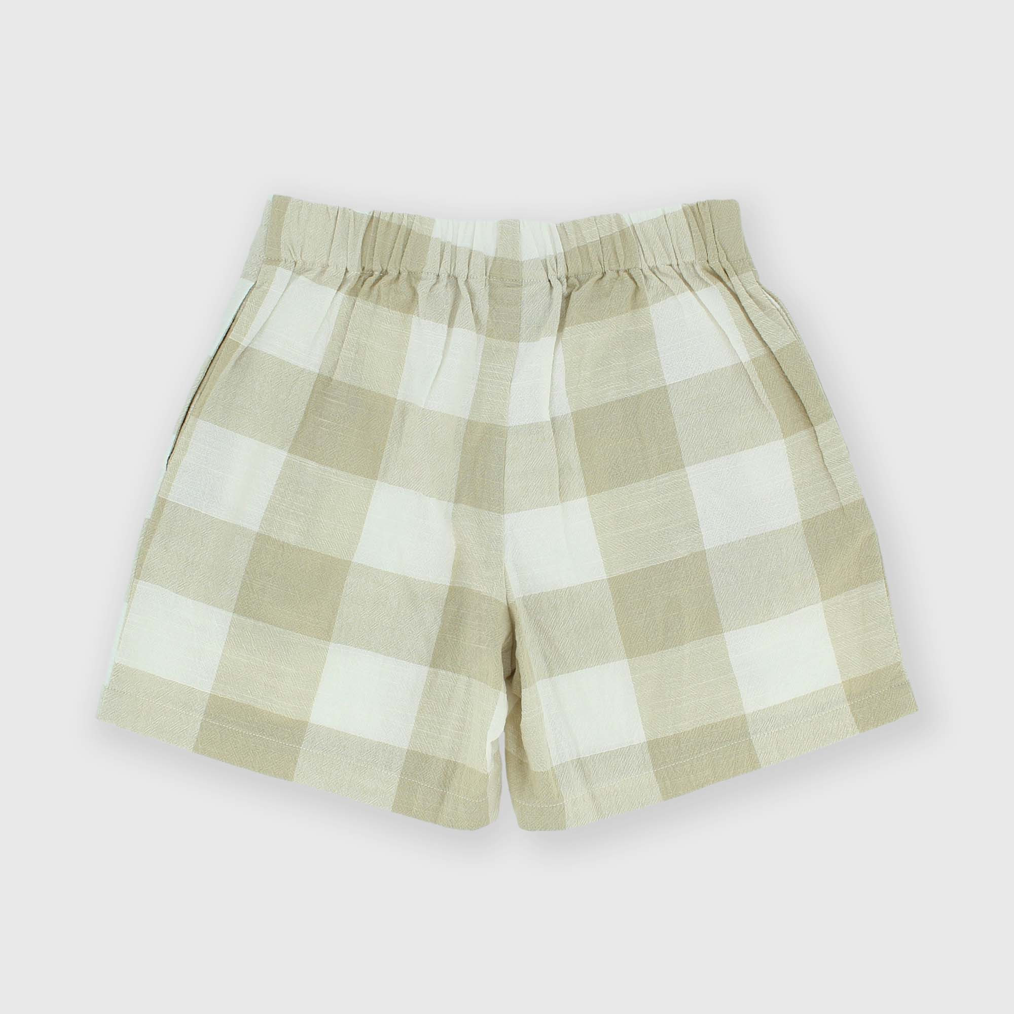 Karierte Shorts aus Baumvolle mit elastischem Bund. Verschluss mit internem Haken und Reißverschluss. Abnäher auf der Vorderseite.