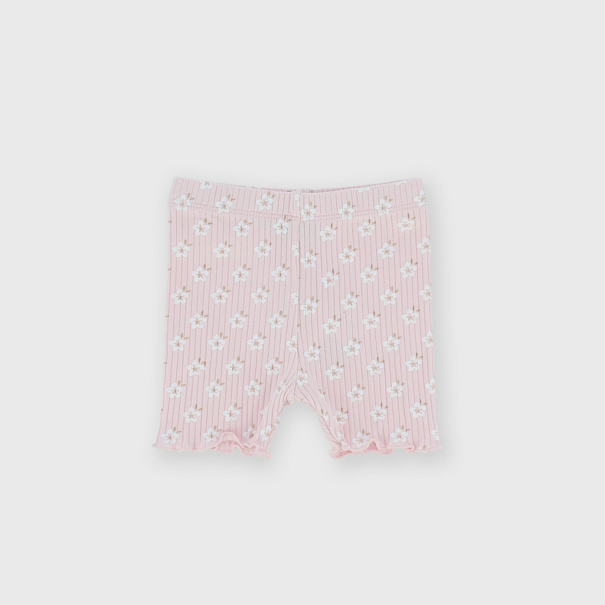 Gerippter Radfahrerhose mit elastischem Bund. Allover-Blumendruck.