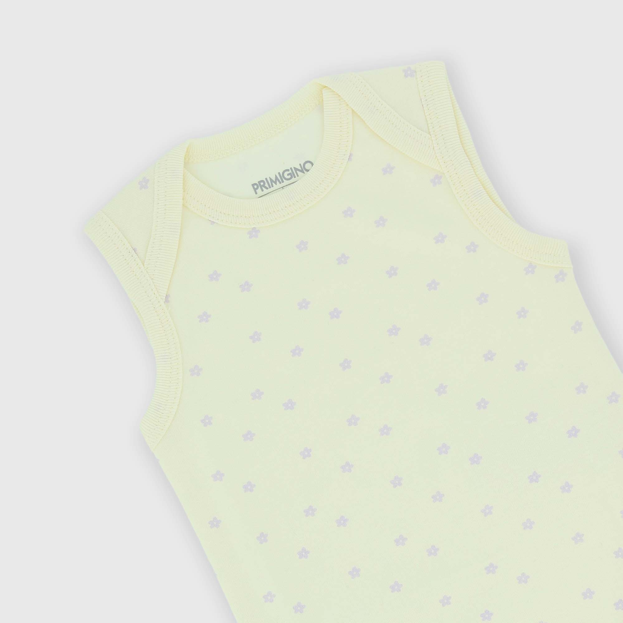 Interlock-Bodysuit mit Rundhalsausschnitt, Armausschnitte. Druckknopfverschluss an der Unterseite. Allover-Blumendruck.