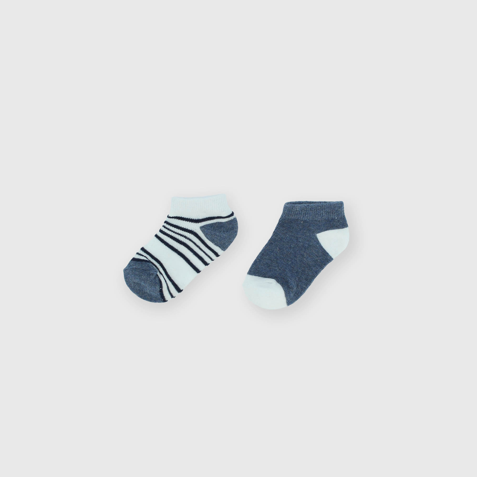Packung bestehend aus zwei Paar kurze Socken: ein Paar mit Streifen und ein Paar mit kontrastierenden Details. Elastische Kanten.