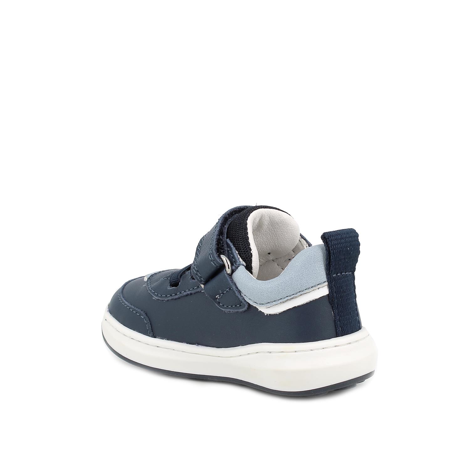 Sneaker für die ersten Schritte mit sportlichem und modernem Design, ideal für tägliche Aktivitäten. Sie verfügen über einen verstellbaren Klettverschluss, der einen bequemen und sicheren Sitz garantiert, und elastische Schnürsenkel am oberen Teil für eine bessere Haftung am Fuß. Das Obermaterial zeichnet sich durch überlappende Details aus, die Dynamik und Stil verleihen. Die Sohle ist leicht und flexibel und sorgt für Komfort und guten Halt auf verschiedenen Oberflächen. Der Innenraum ist gepolstert, um während des Gebrauchs Halt und Schutz zu bieten