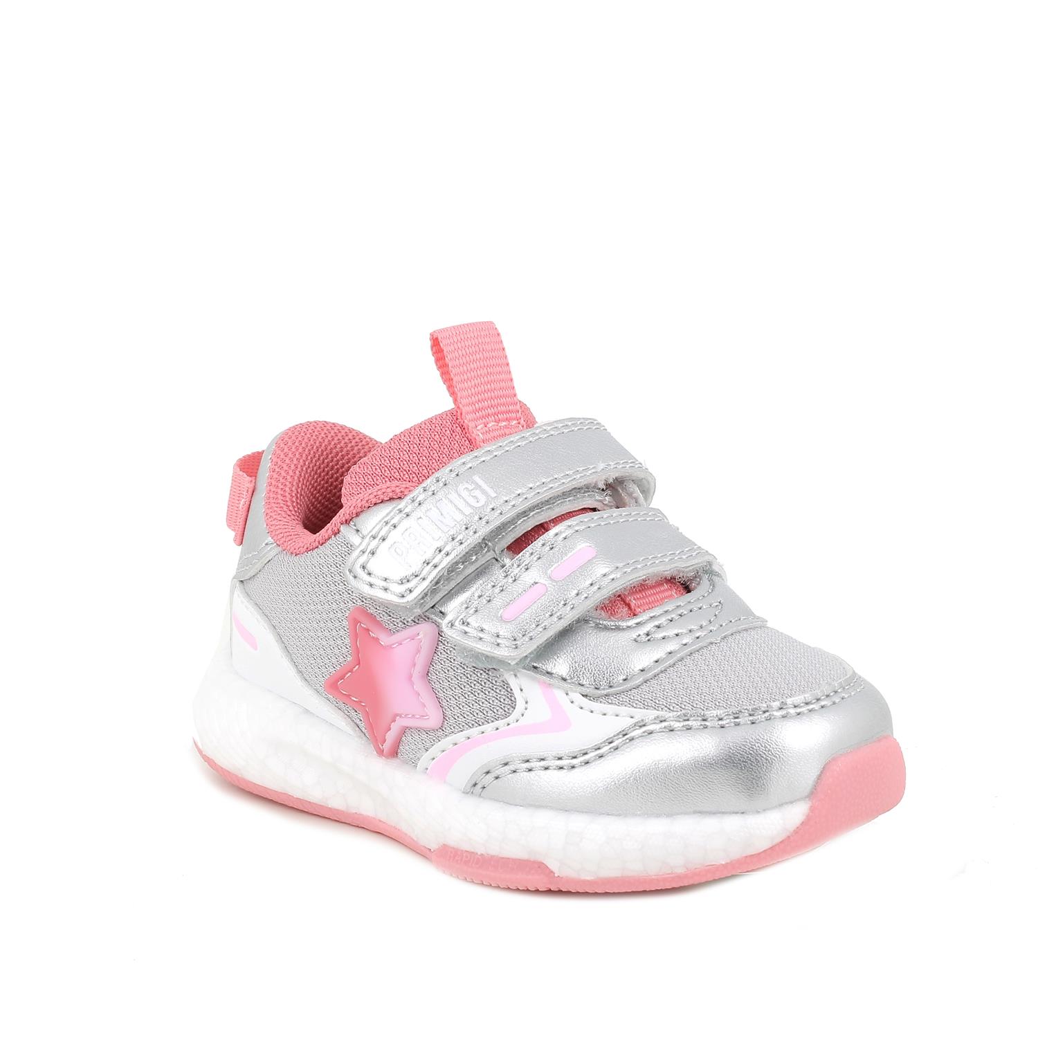 Sportschuhe für Mädchen, die sich durch ein attraktives Design auszeichnen. Das Obermaterial besteht aus technischem Material mit schützender Polsterung. Der Verschluss ist praktisch und sicher, mit doppeltem Klettverschluss. Im Inneren befindet sich eine Lederdecksohle, die herausgenommen und an der Luft getrocknet werden kann. Die Sohle garantiert Dämpfung und guten Halt und eignet sich daher perfekt für alltägliche Aktivitäten.