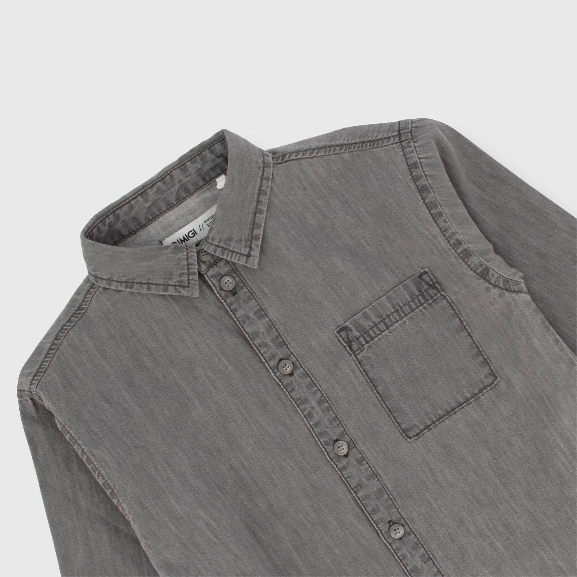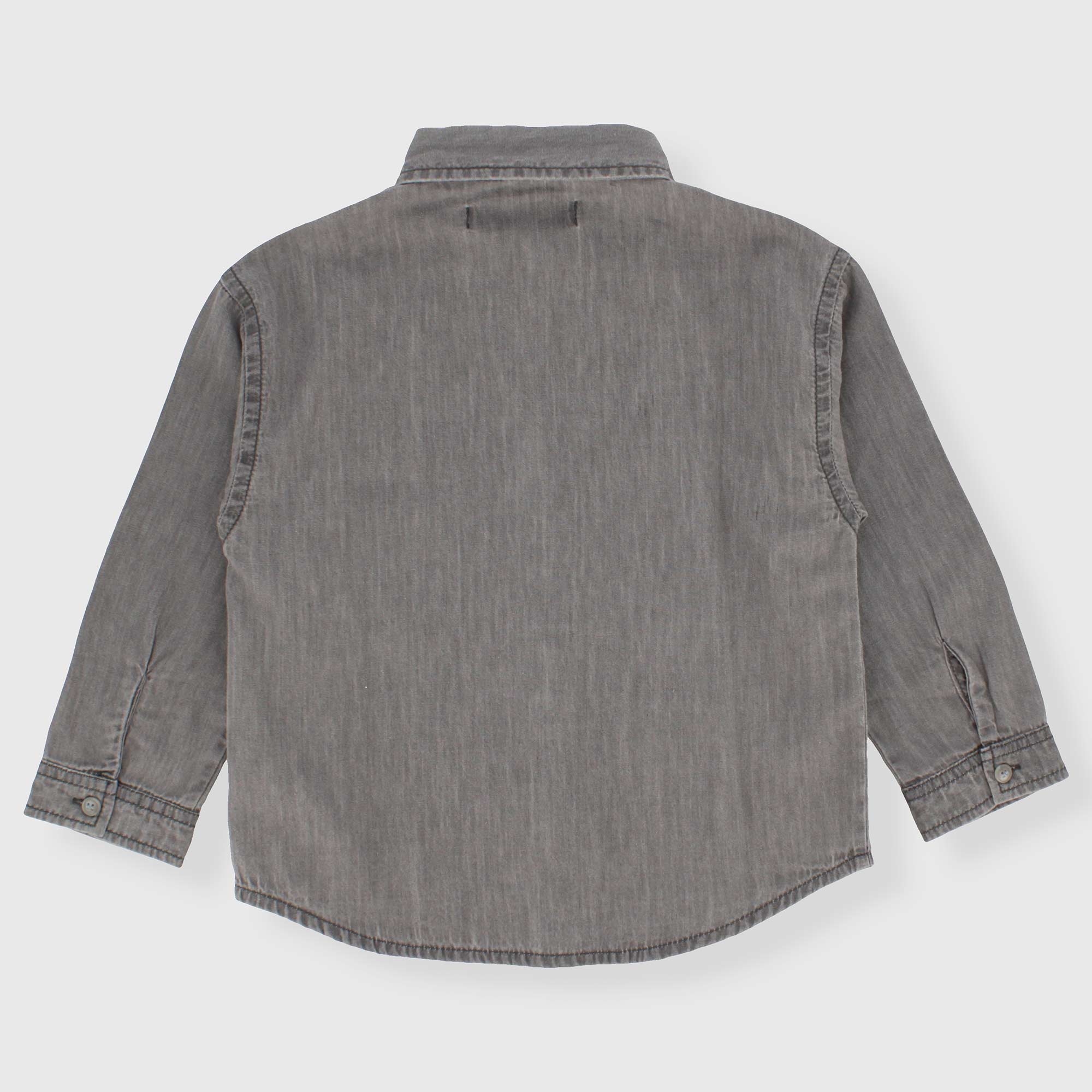 Langärmliges Jeanshemd. Knopfverschluss vorne. Brusttasche.