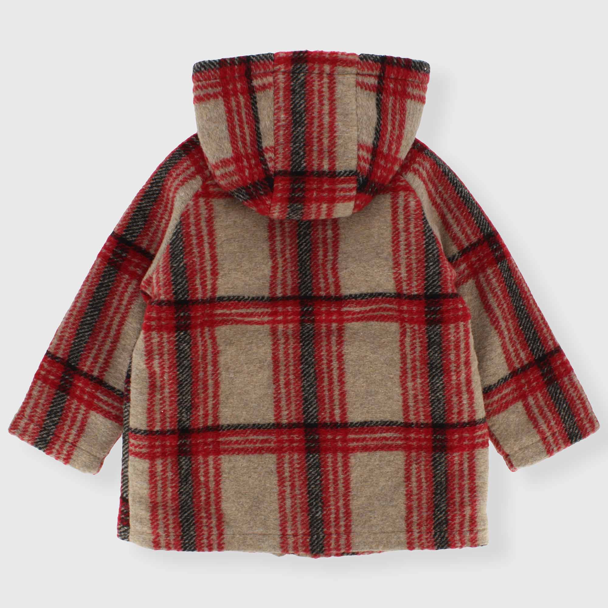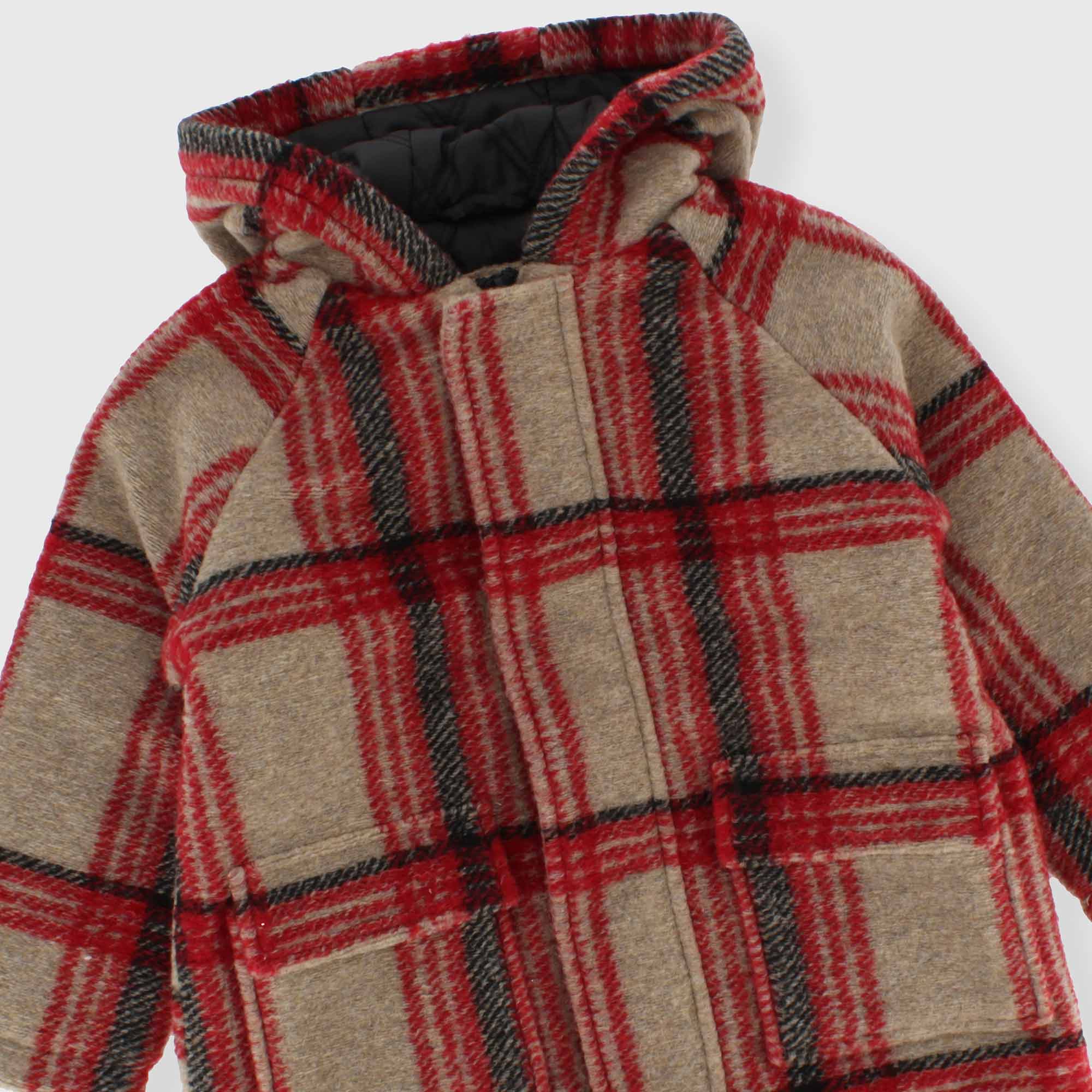 Mantel aus Madras-Stoff mit Kapuze und langen Ärmeln. Vorderer Verschluss mit Reißverschluss und Knöpfen. Aufgesetzte Taschen mit Patte vorne.