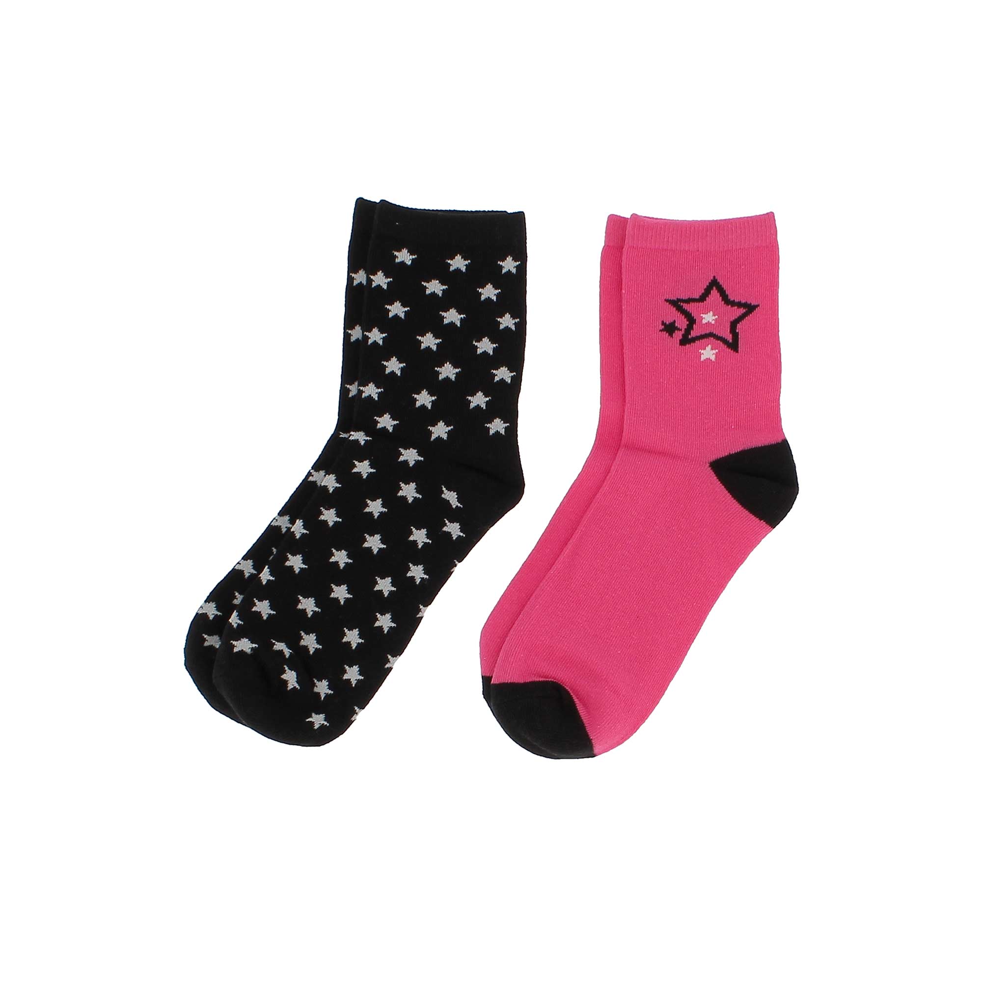 Doppelpack mit zwei Paar Socken. Eins mit Tupfen und eins mit Sternchen. Elastische Ränder.