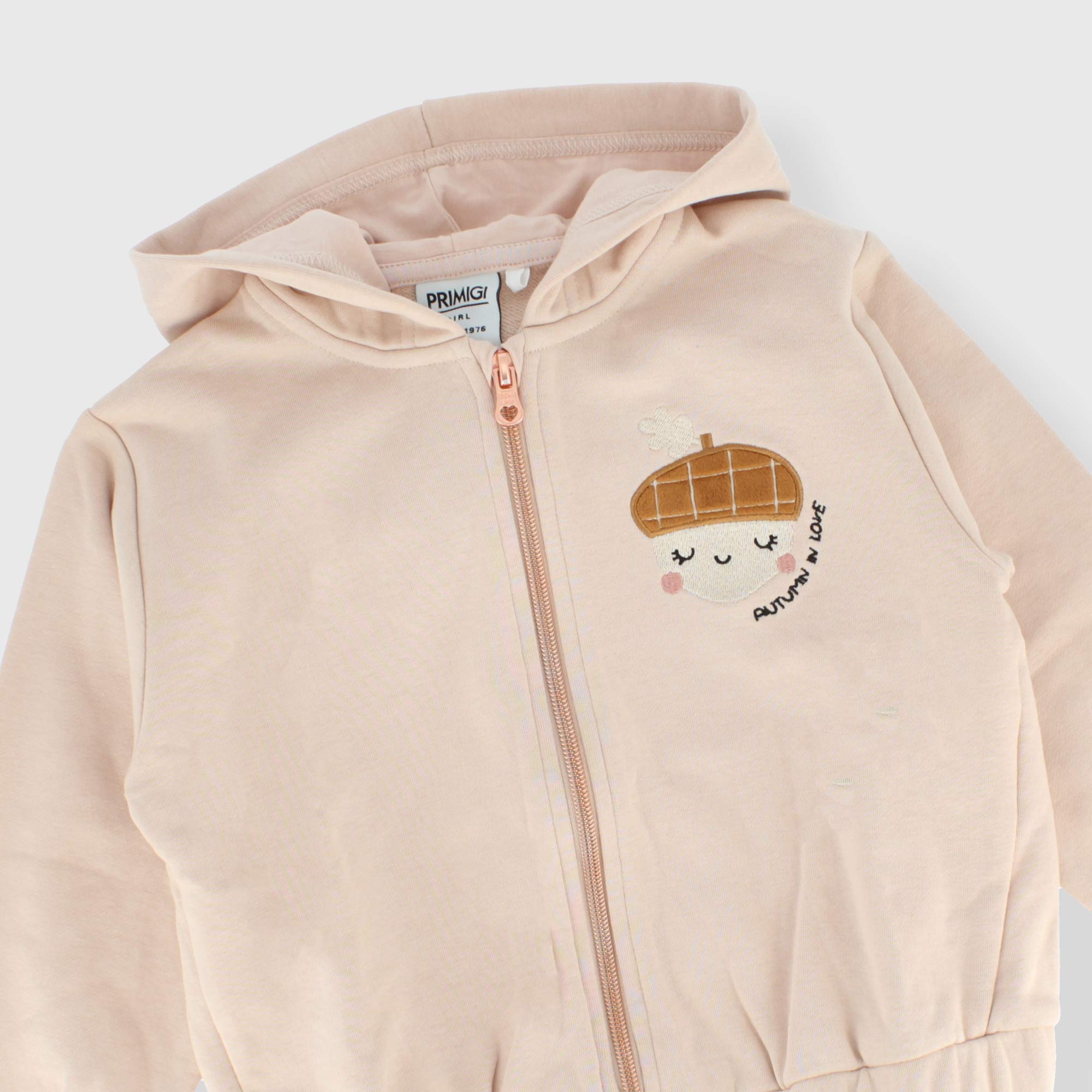 Offenes Kapuzensweatshirt mit langen Ärmeln. Reißverschluss vorne. Stickerei auf der Brust. Bündchen und Saum mit Gummizug.
