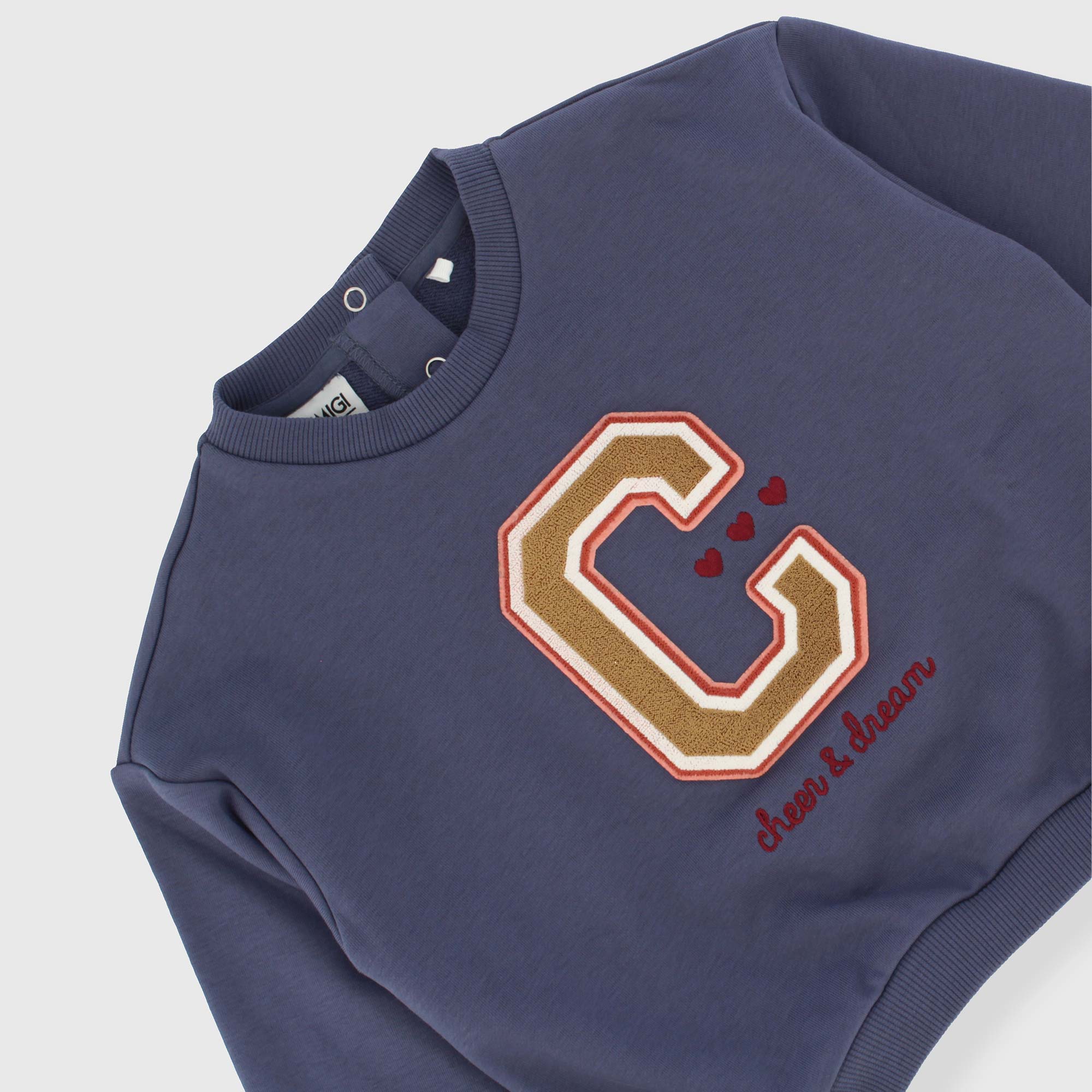 Langärmliges Sweatshirt mit Rundhalsausschnitt. Knopfverschluss auf der Rückseite. Patch mit 3D-Effekt und Stickerei auf der Vorderseite. Gerippter Kragen, Bündchen und Saum.