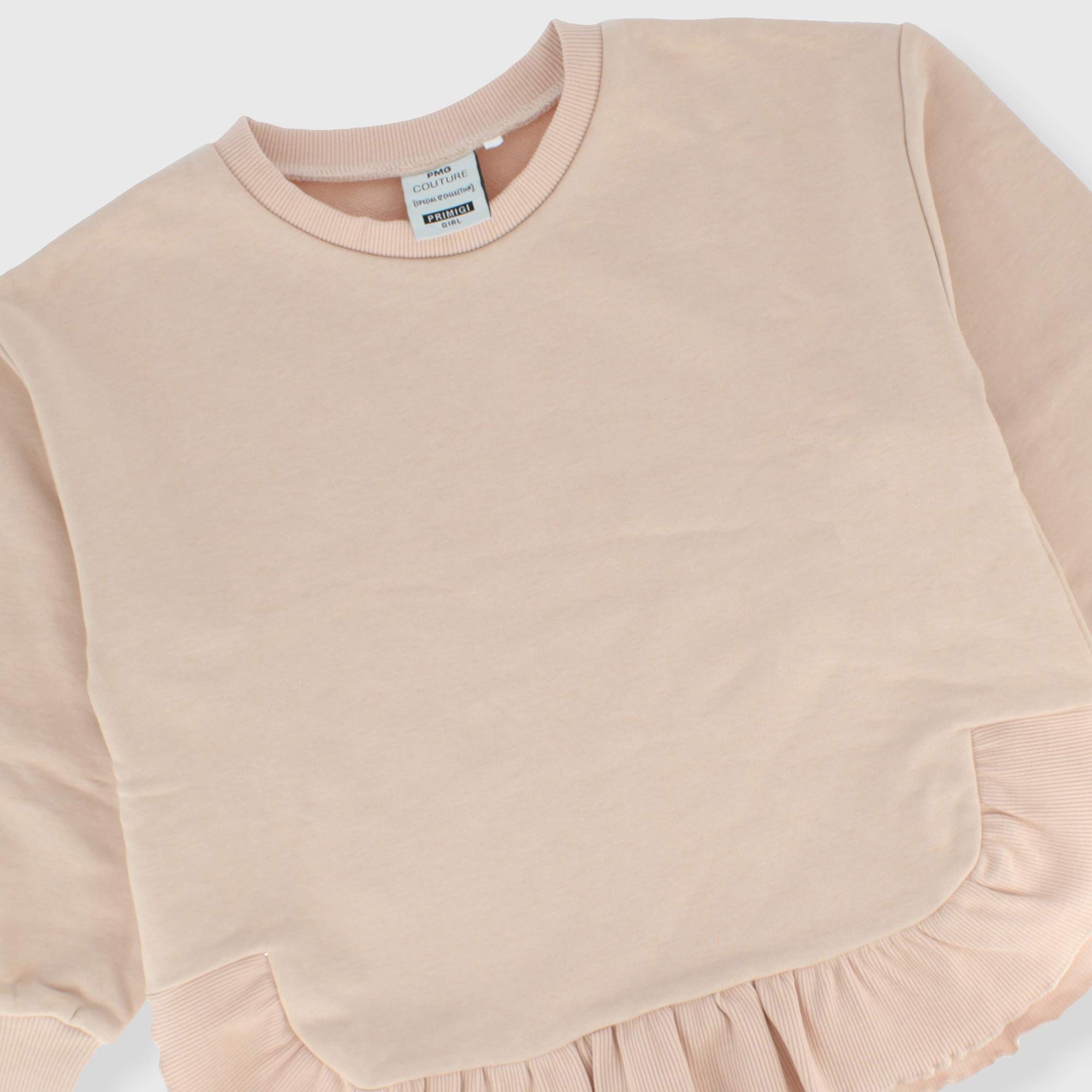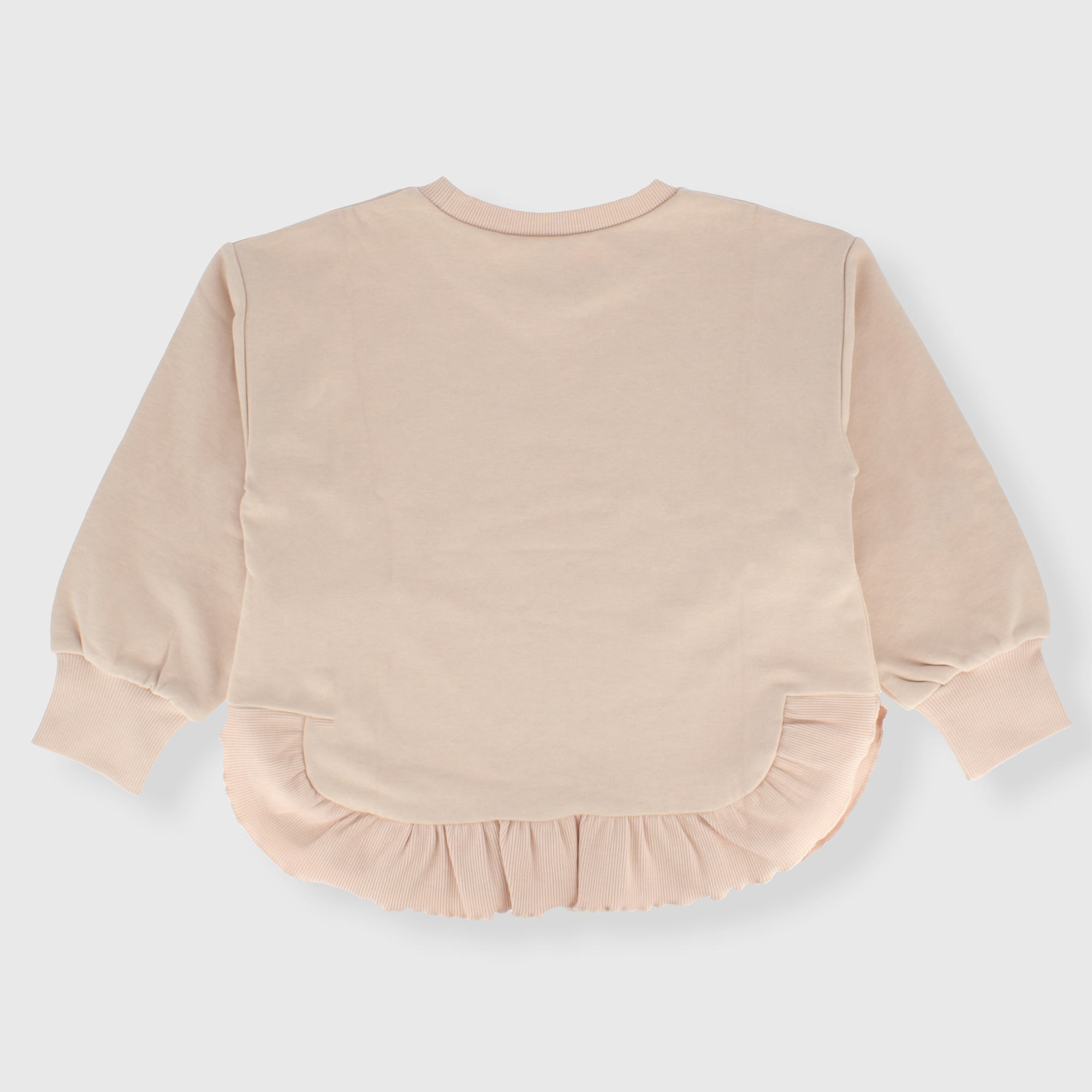 Langärmliges Sweatshirt mit Rundhalsausschnitt. Abgerundeter Boden mit geripptem Rand.