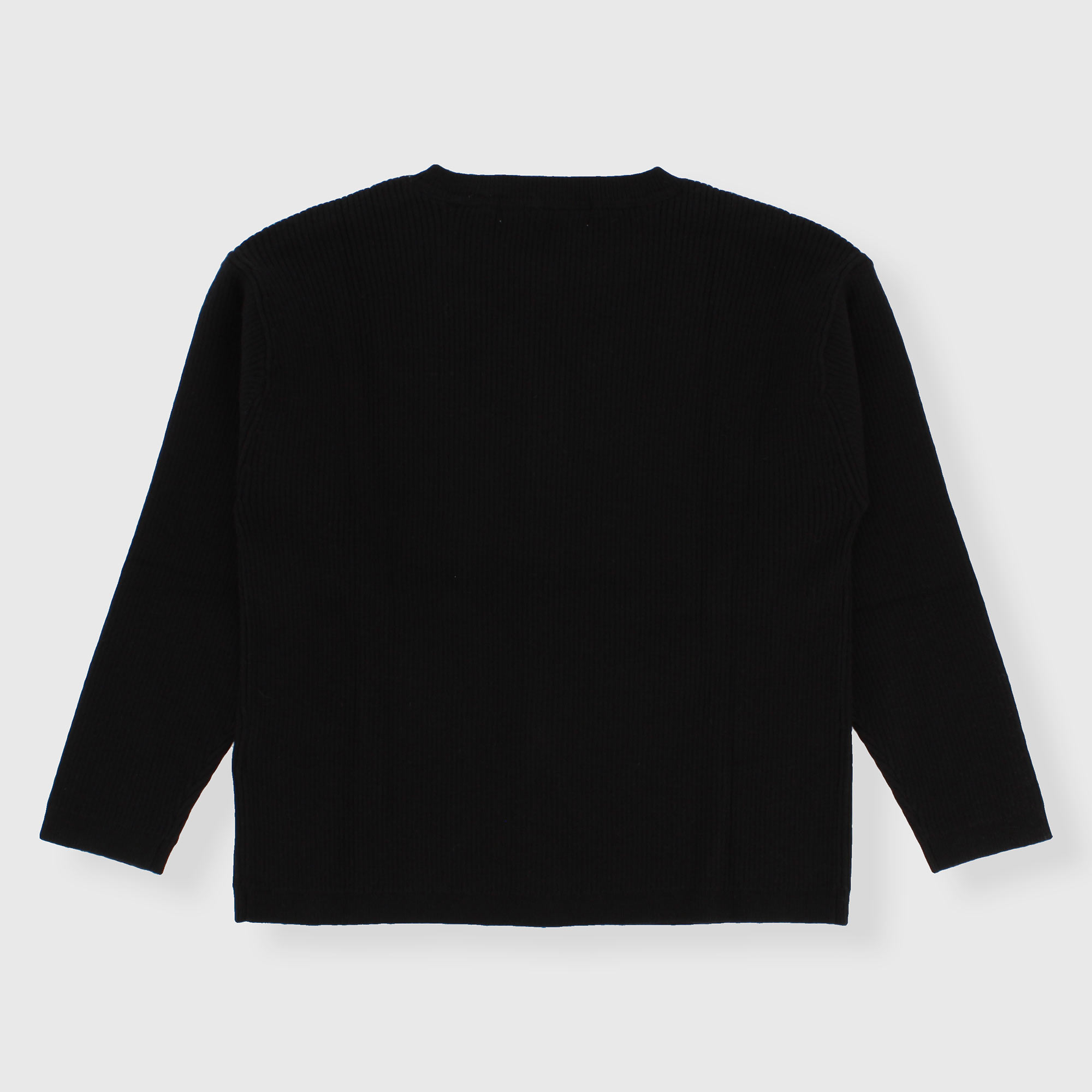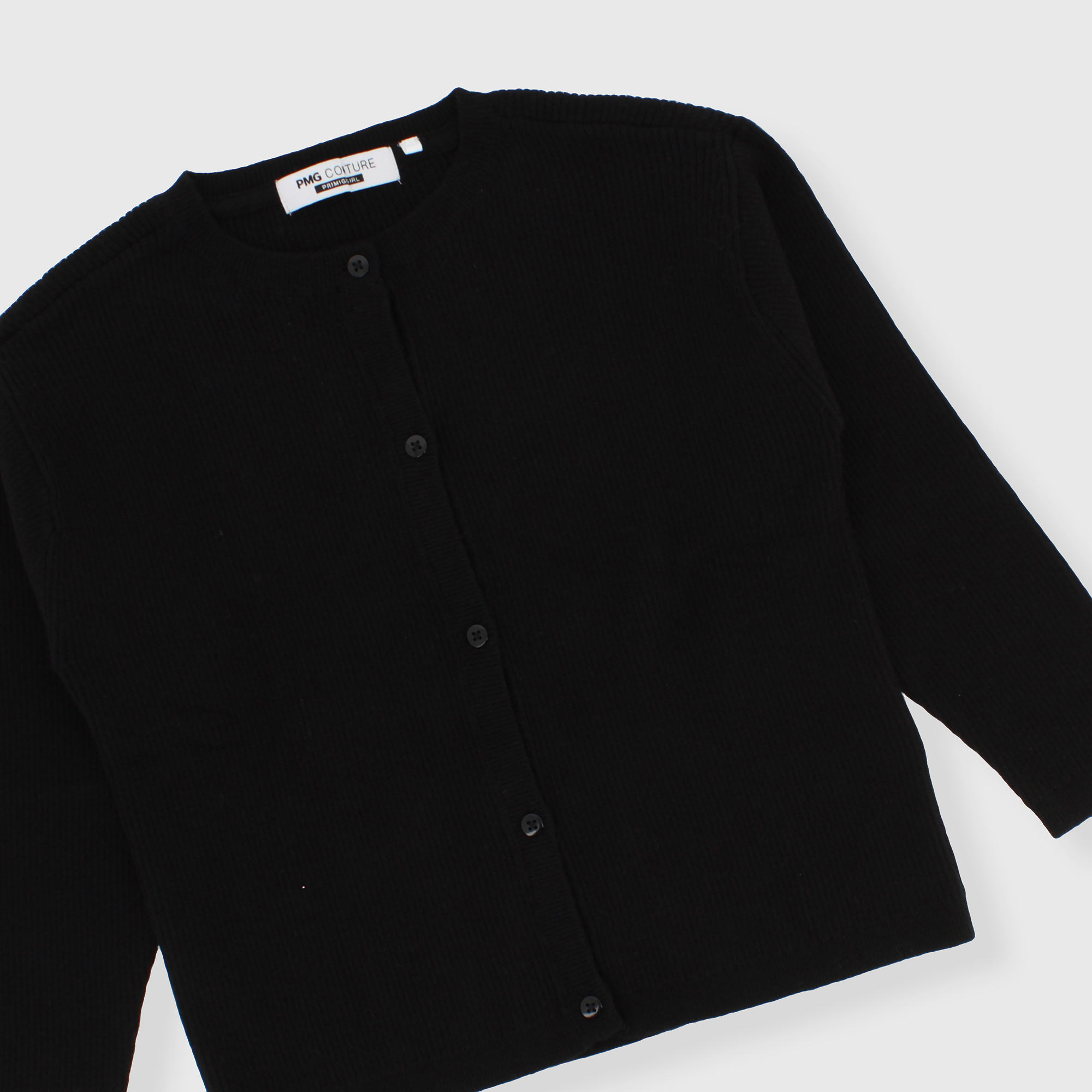 Strickjacke aus Rippstrick, Rundhalsausschnitt, lange Ärmel. Knopfverschluss vorne.