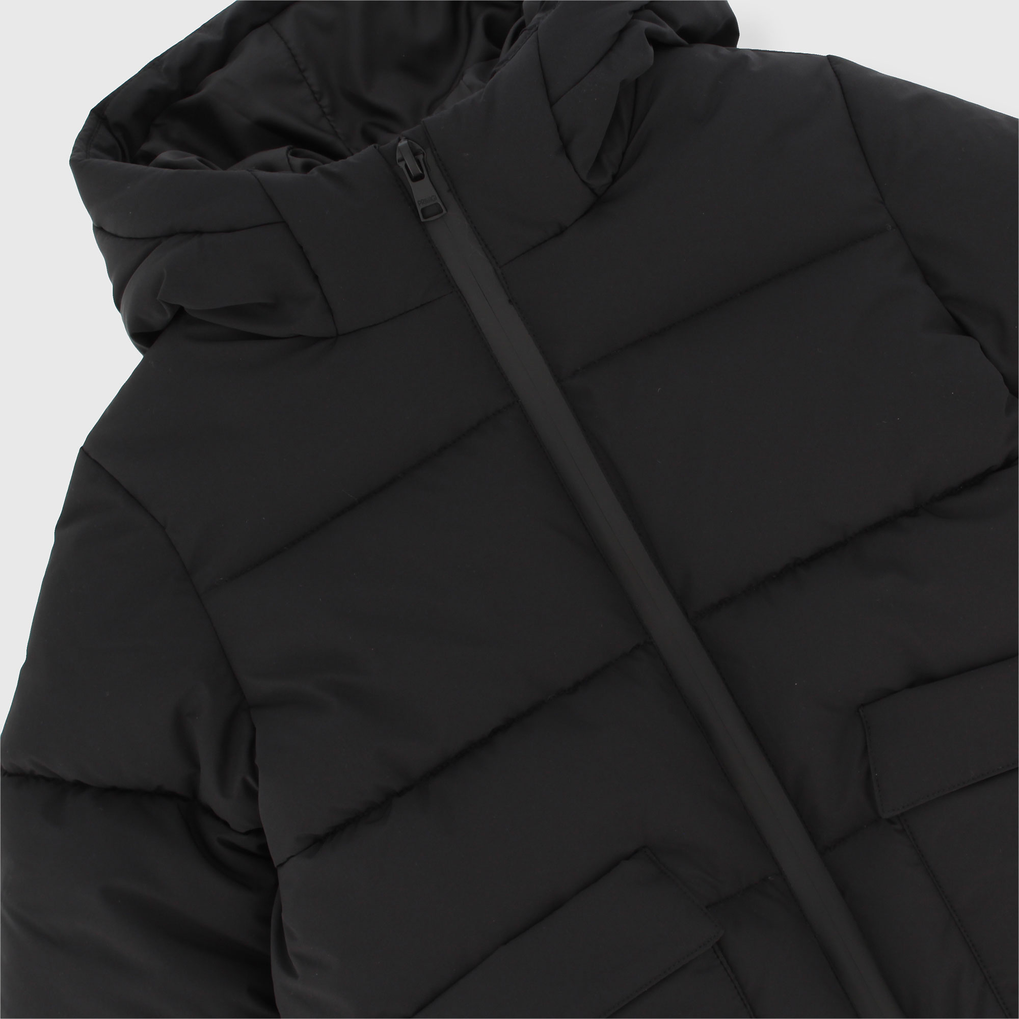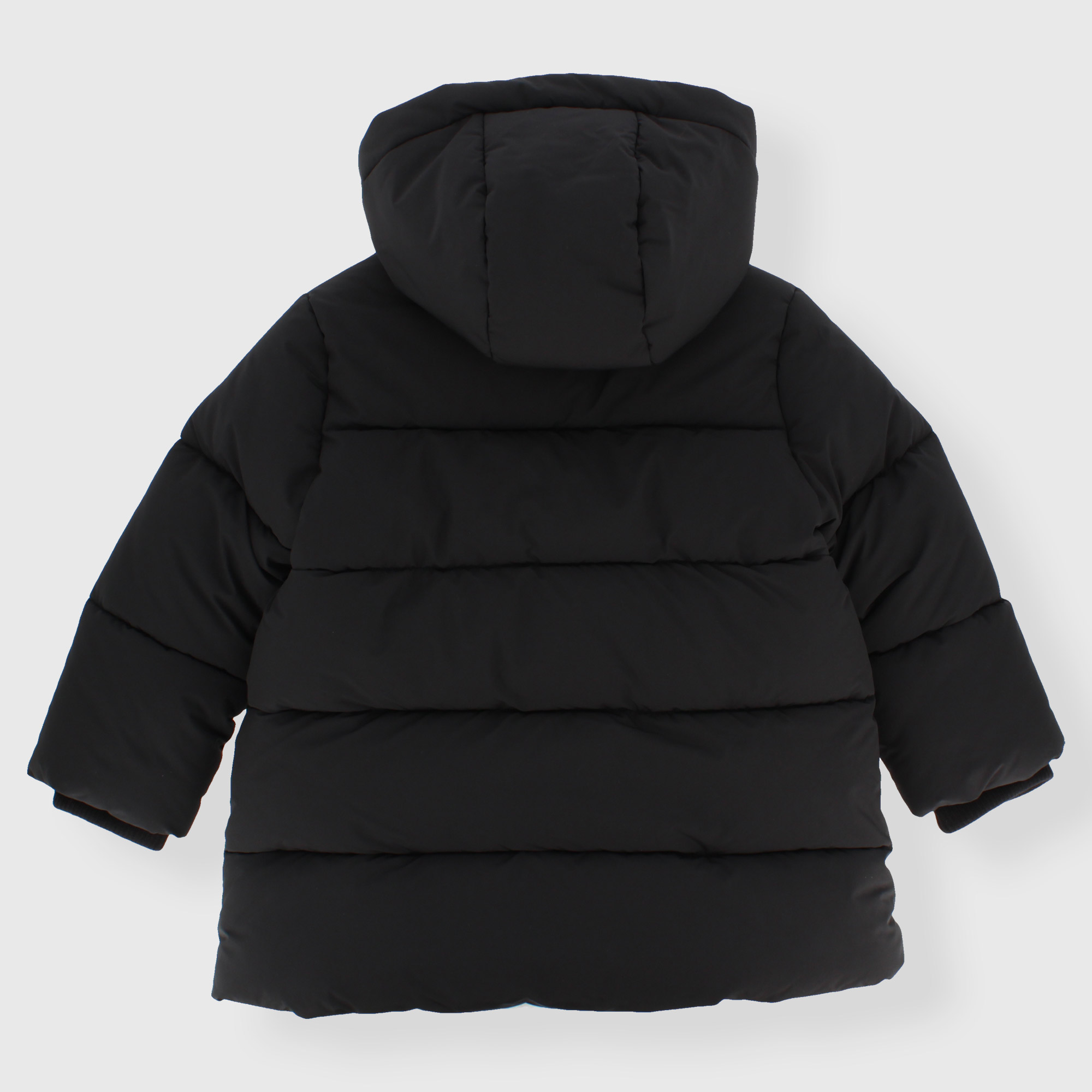 Langärmlige Kapuzenjacke. Gummierter Reißverschluss vorne. Vordertaschen. Gerippte Bündchen. Innenfutter mit Fleece.