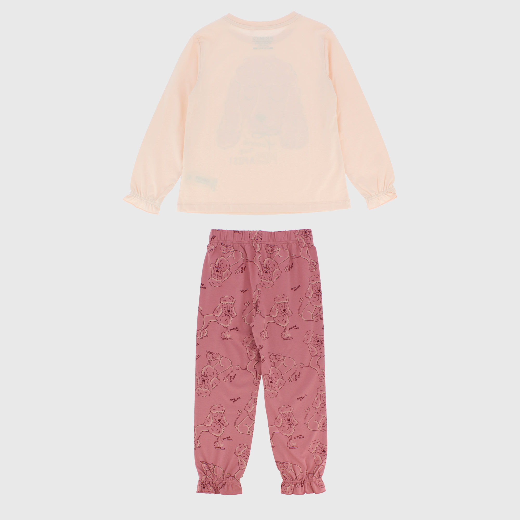 Pyjama-Set aus Jersey. Langärmliger Pullover mit Rundhalsausschnitt. Druck auf der Vorderseite. Hose mit elastischem Bund und Allover-Pudel-Print.