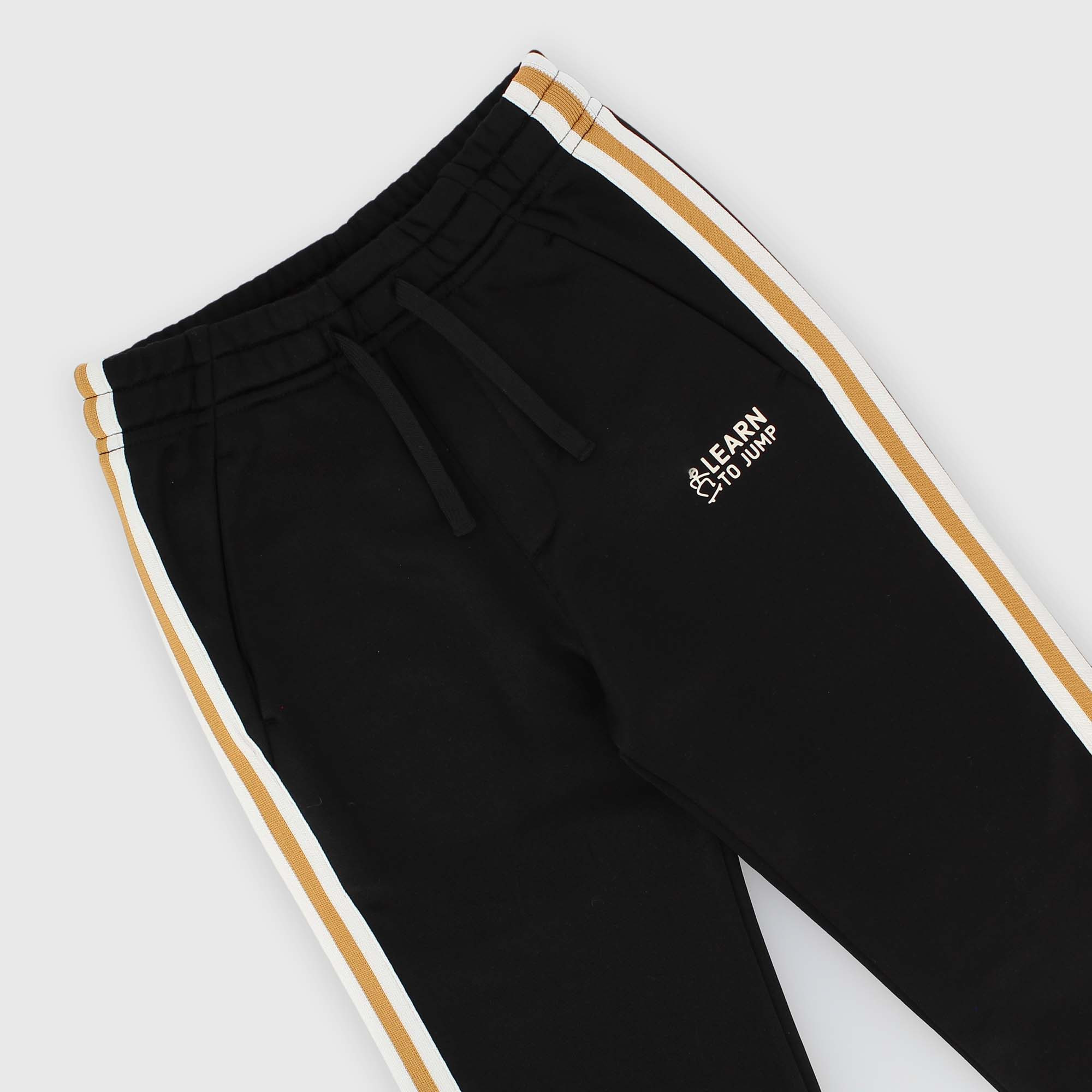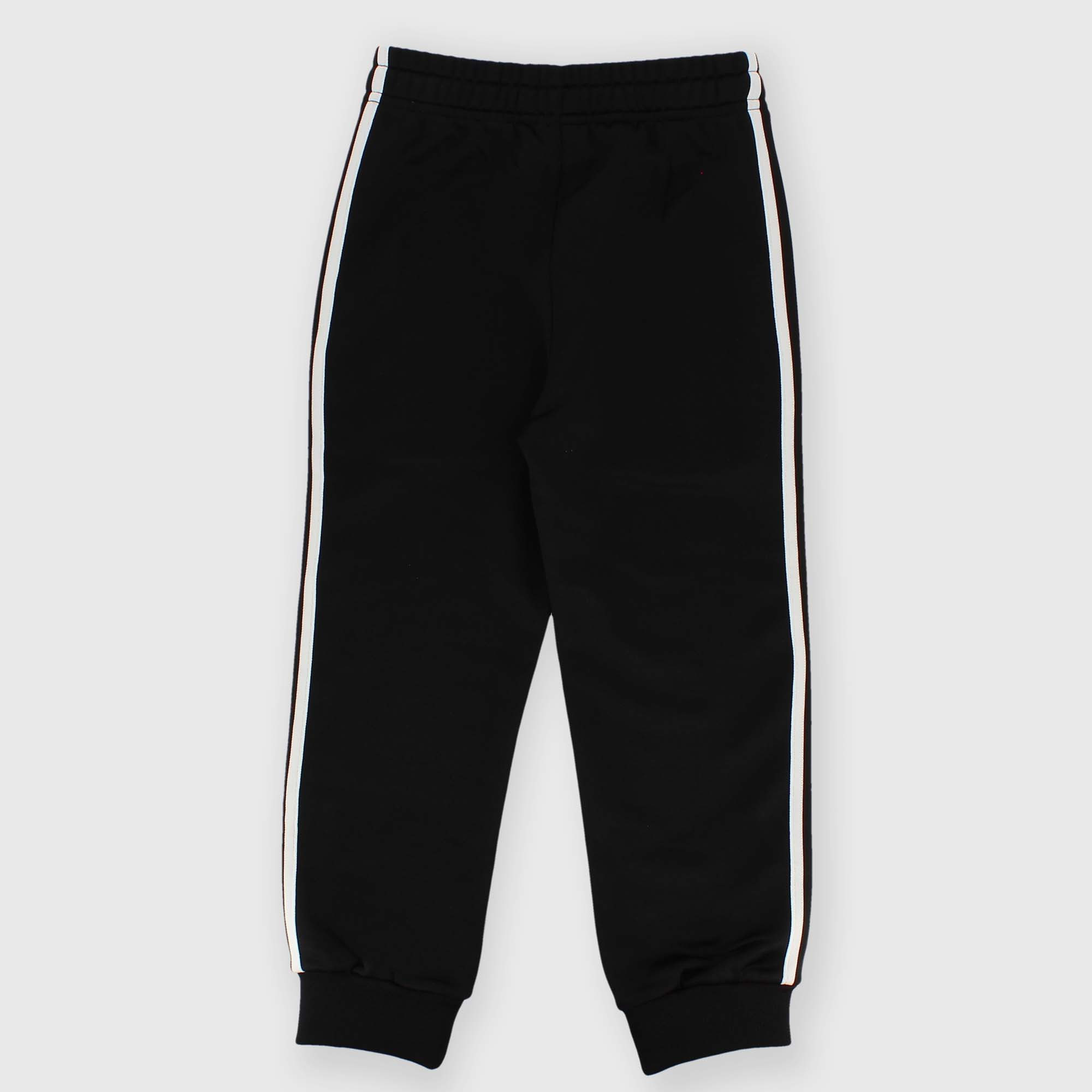 Hose aus Triacetat mit elastischem Bund und vorderen Schnürsenkeln. Französische Taschen. Kontrastierende seitliche Streifen. Kleiner gummierter Druck auf der Vorderseite. Elastischer Saum.