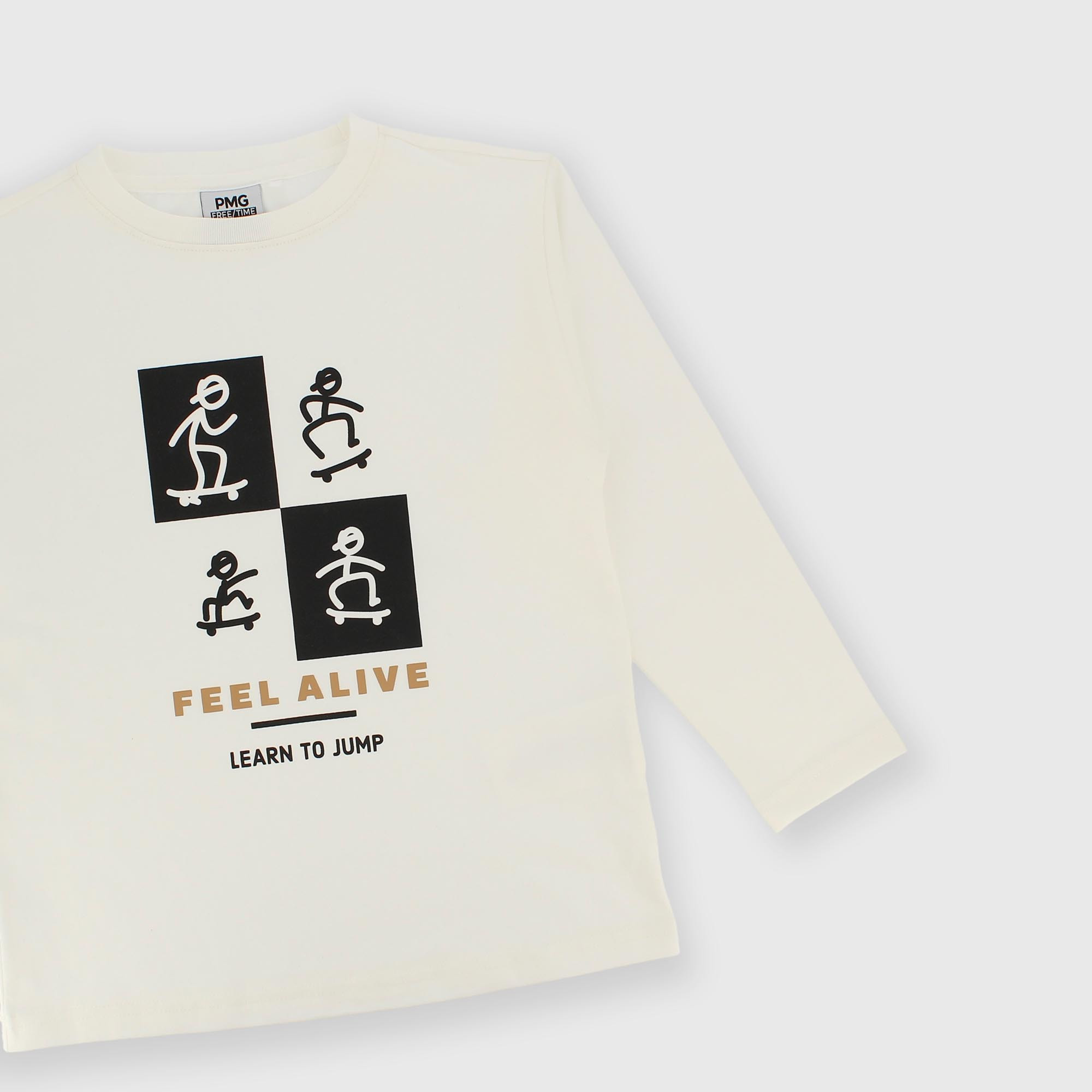 Jersey-T-Shirt, Rundhalsausschnitt, lange Ärmel. Druck auf der Vorderseite.