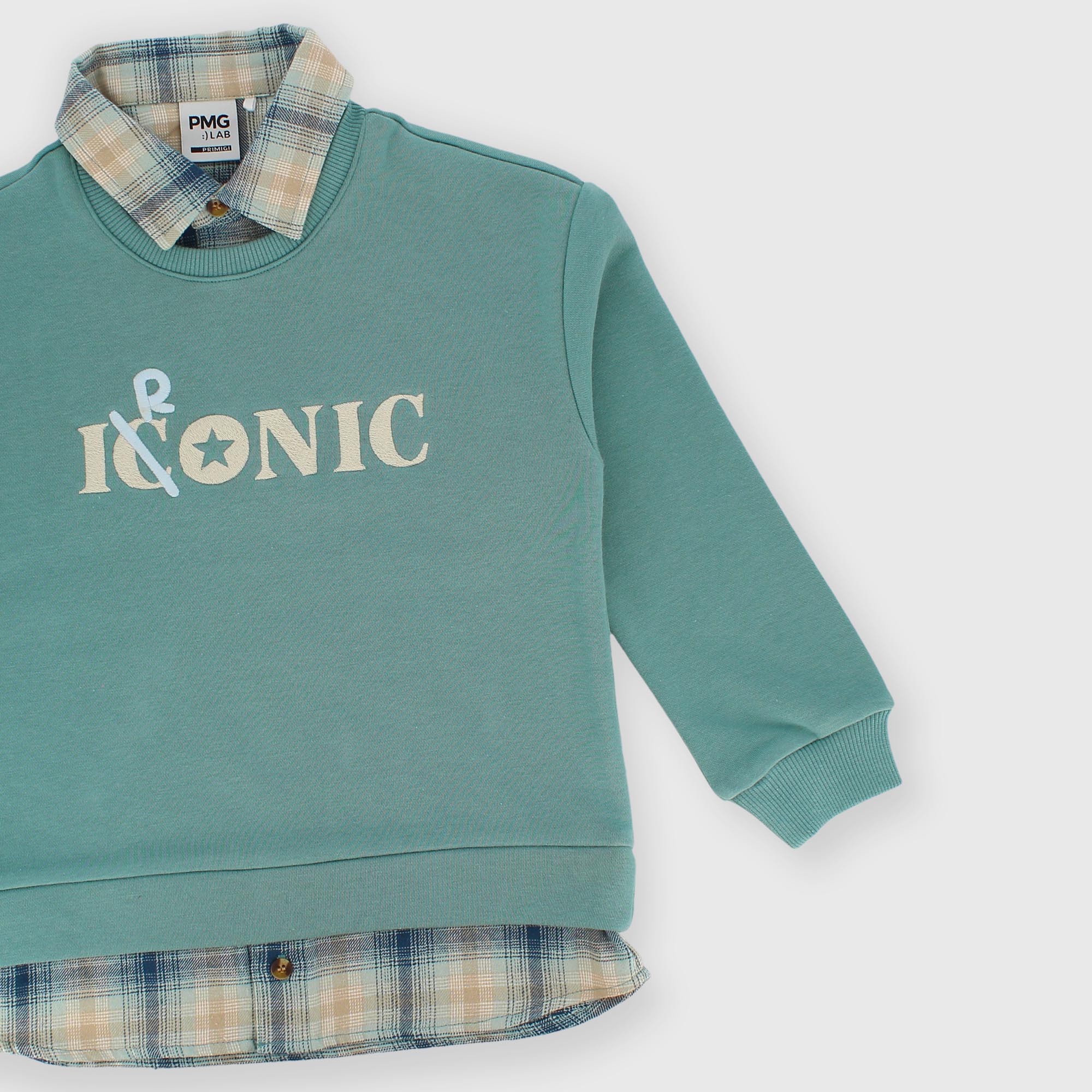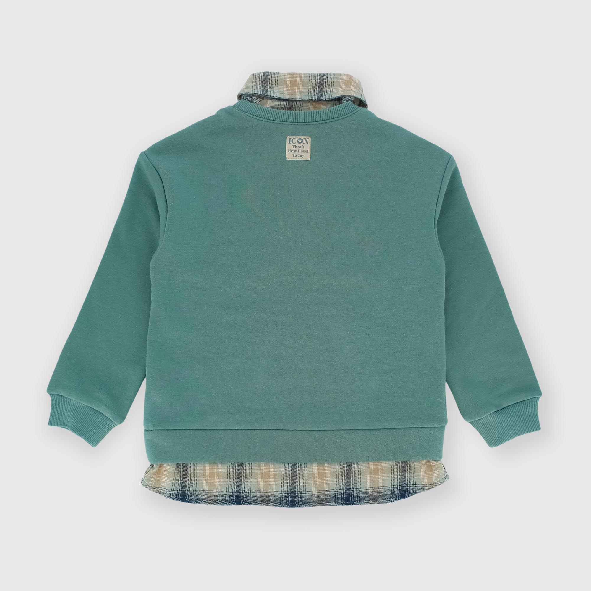 Langarm-Sweatshirt mit aufgenähter karierten Hemdimitat darunter. Stickerei auf der Vorderseite. Kragen und Bündchen in Rippstrick.