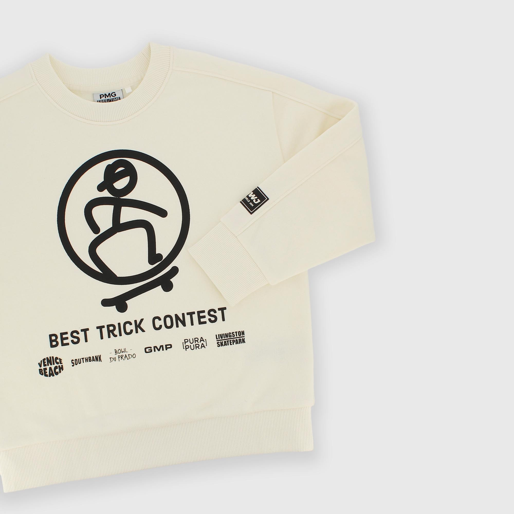 Sweatshirt mit weichem gebürstetem Innenfutter, Rundhalsausschnitt, langärmelig. Print mit gummiartigem Effektdetail auf der Vorderseite. Ausschnitt, Bündchen und Saum in Rippstrick.