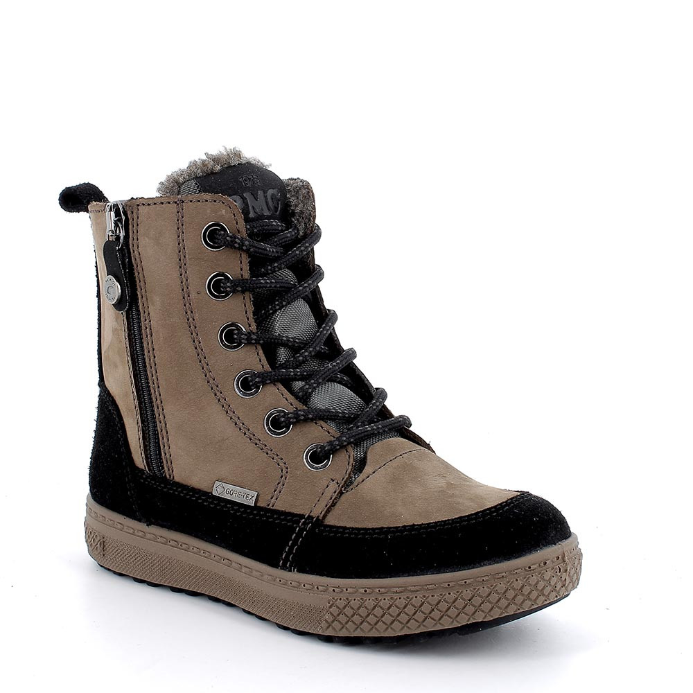 Jungen-Stiefeletten aus Leder, beige-schwarz