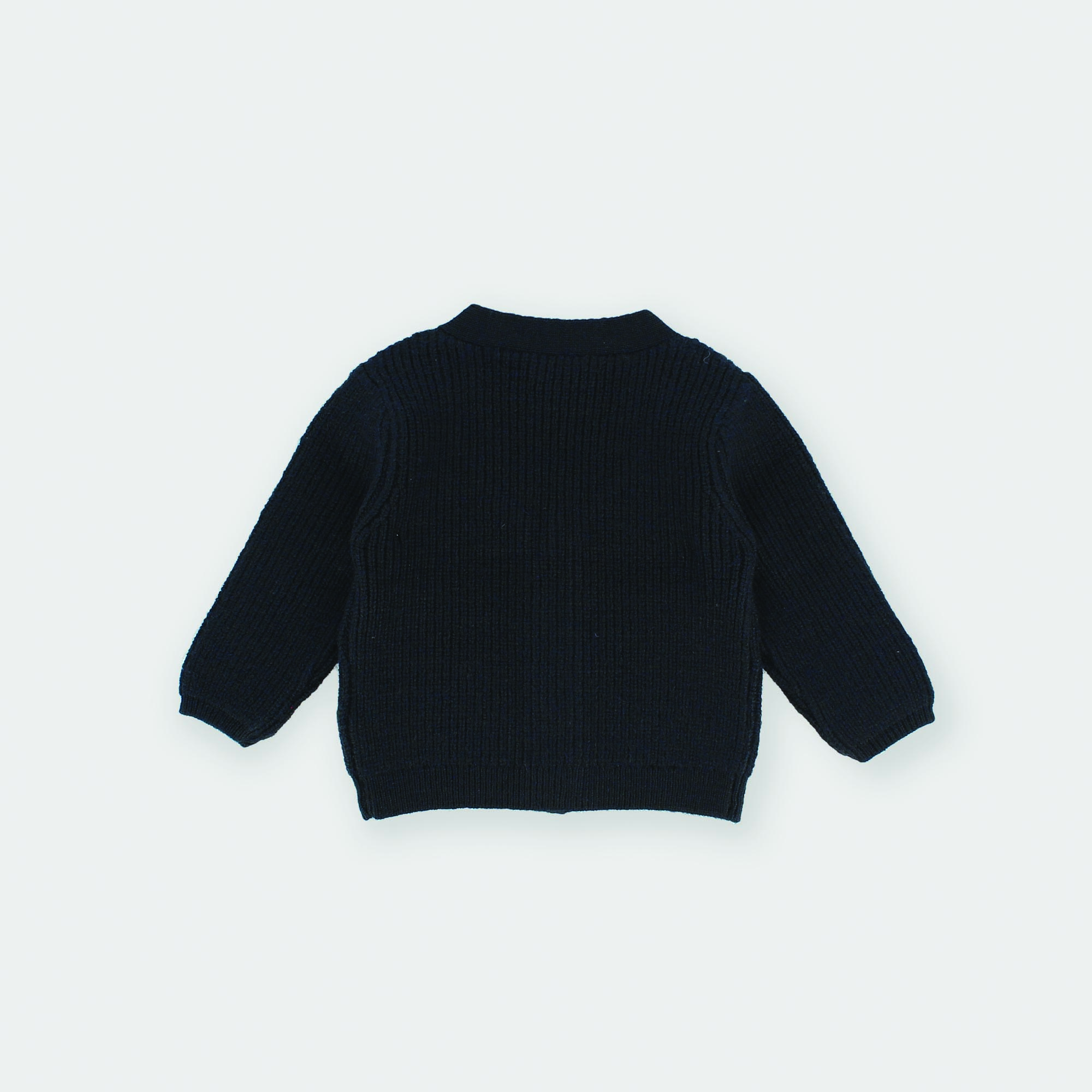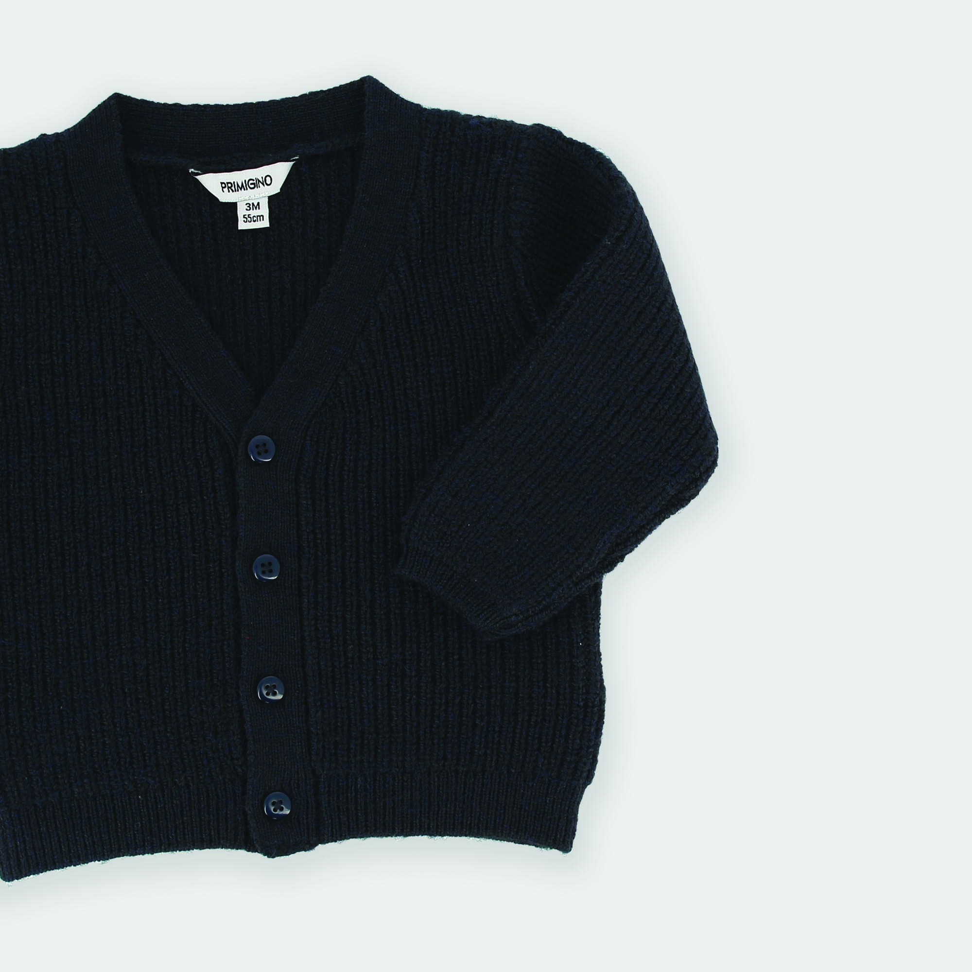 Strickjacke aus weichem Material, V-Ausschnitt, langärmlig. Vorderseite mit Knöpfen zu schließen.