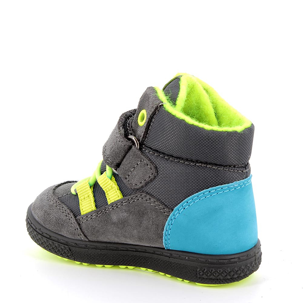 Stiefel erste Schritte mit einem Outdoor-Look der perfekt zu einer Jeans oder einer eher winterlichen Hose passt. Perfekt für die lebhaftesten Jungs die gerne in Pfützen springen. Die Füße bleiben dank der integrierten Gore-Tex-Membran immer trocken und die Knöchel haben die richtige Unterstützung. Die elastische Schnürung ist sehr praktisch und schnell. Der Fuß ruht auf einem warmen Plantar der für mehr Hygiene herausgezogen werden kann.