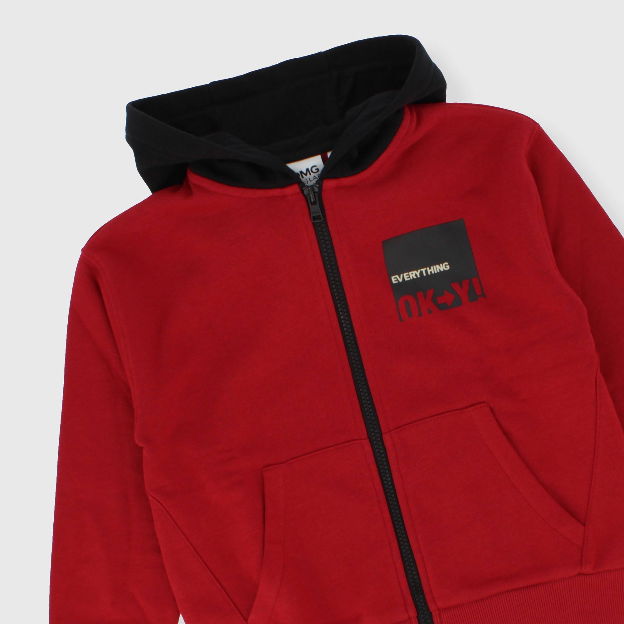 Trainingsanzug mit weich gebürsteter Innenseite, bestehend aus zwei Teilen. Kapuzenpullover, lange Ärmel. Reißverschluss vorne. Kängurutasche und hochauflösender Druck auf der Vorderseite. Gerippter Saum und Bündchen. Fleecehose mit elastischem Bund und Schnürsenkeln vorne.
