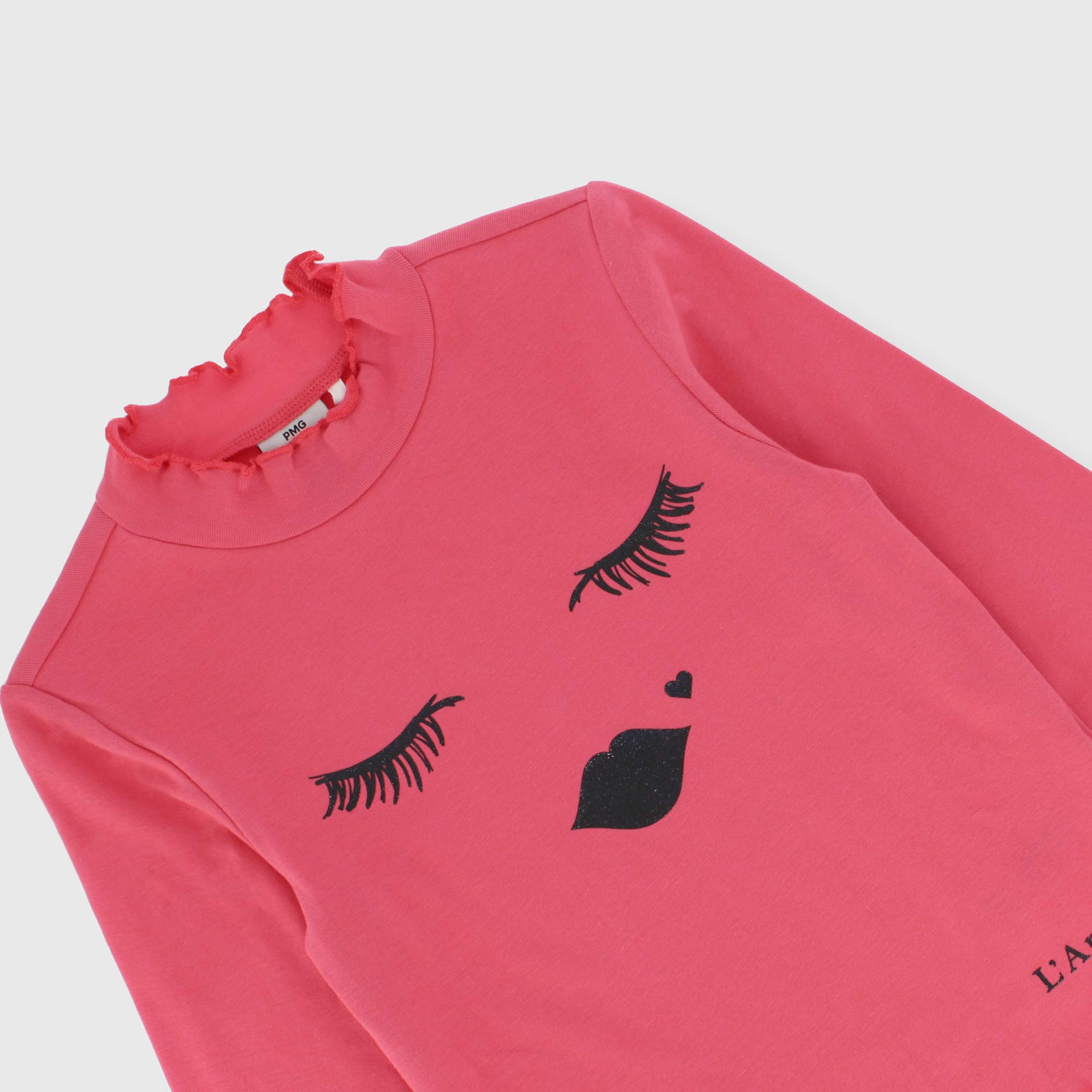Gerippter Rollkragenpullover mit langen Ärmeln. Druck mit Glitzerdetails auf der Vorderseite.