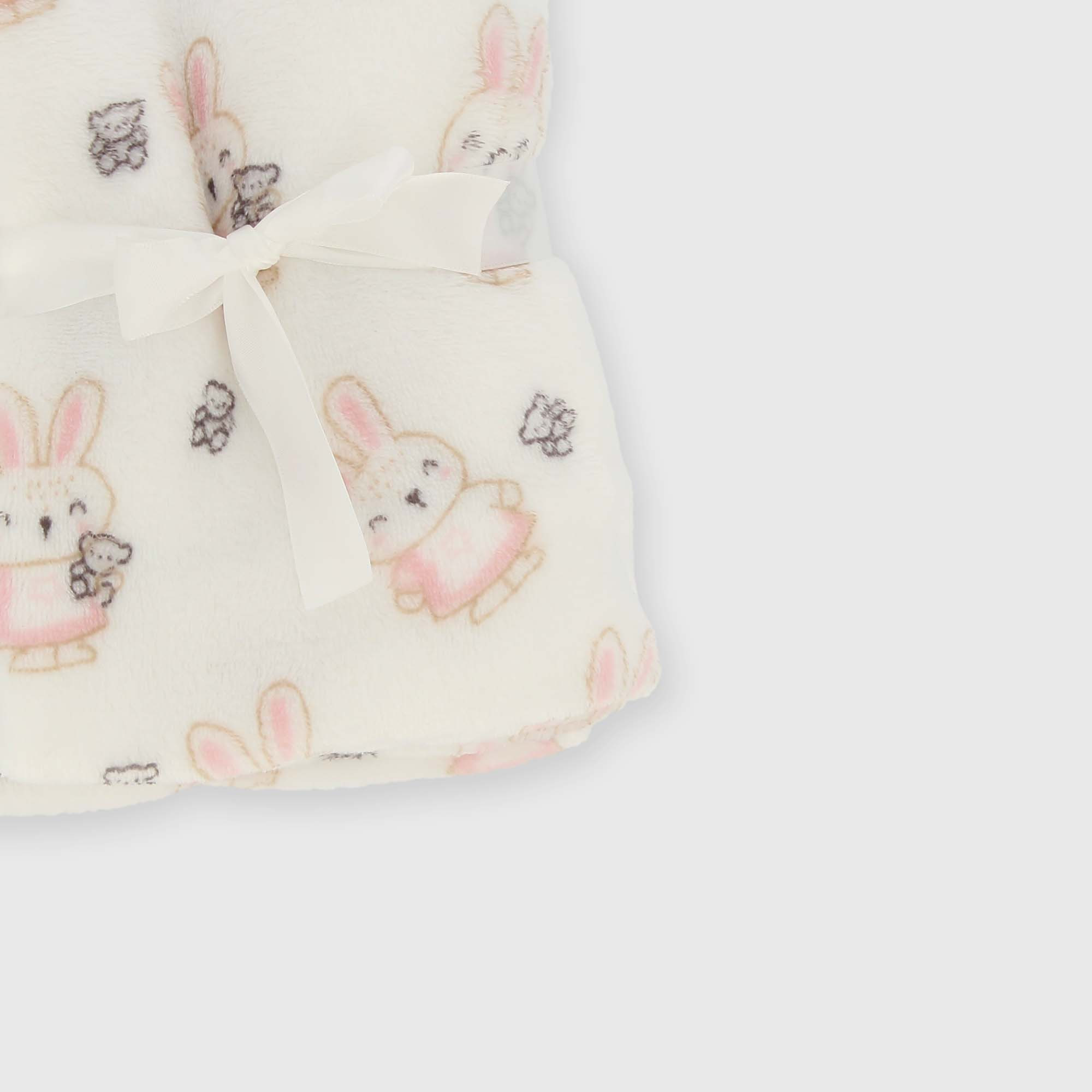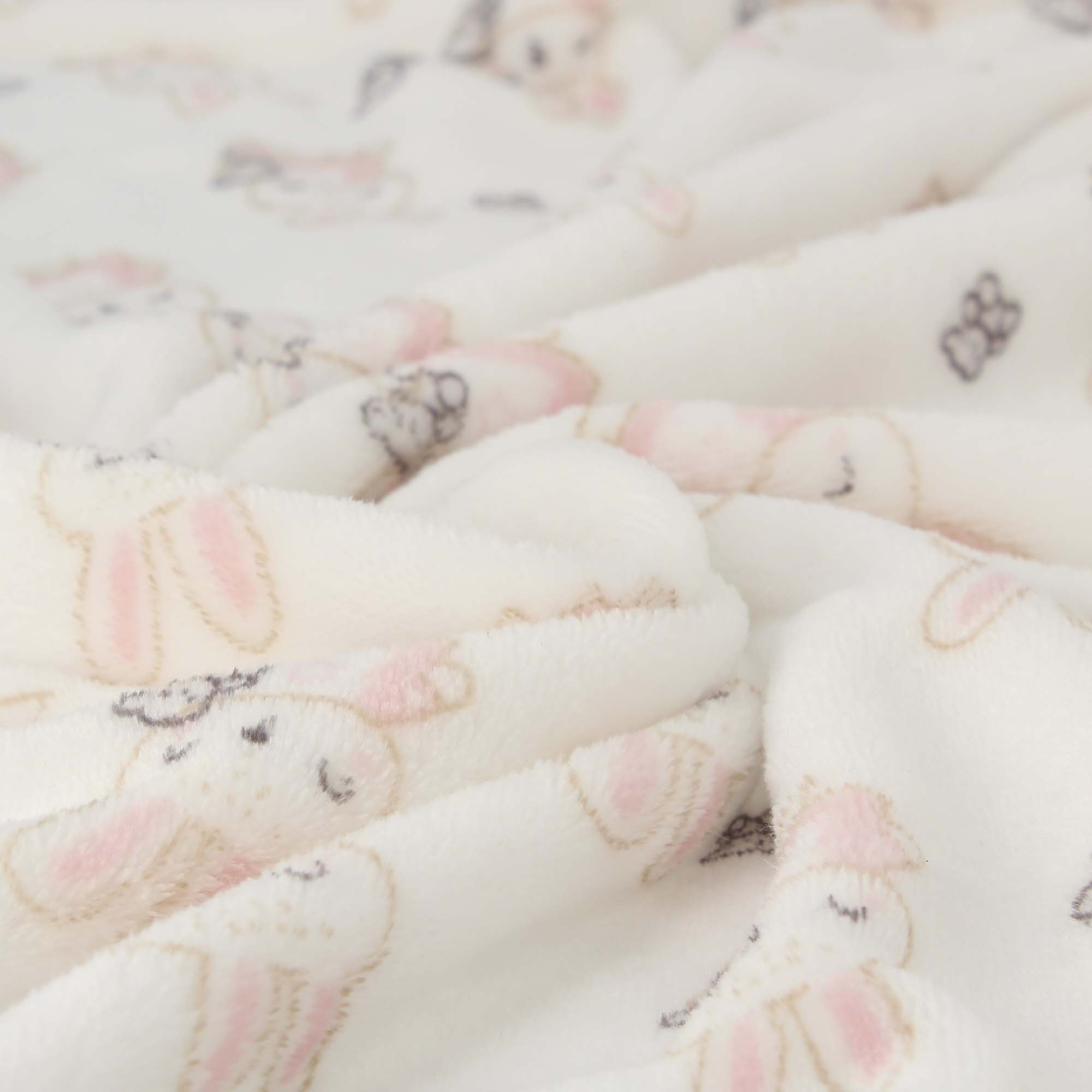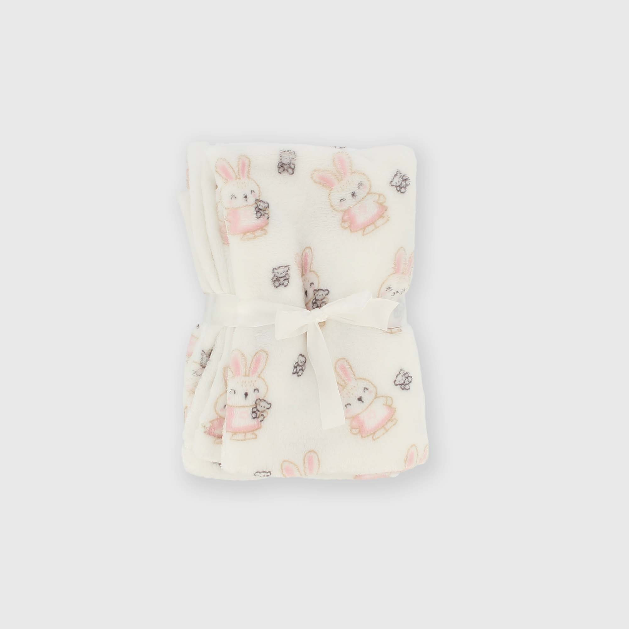 Fleece-Decke für Neugeborene. Allover-Druck mit Kaninchen und Bären.