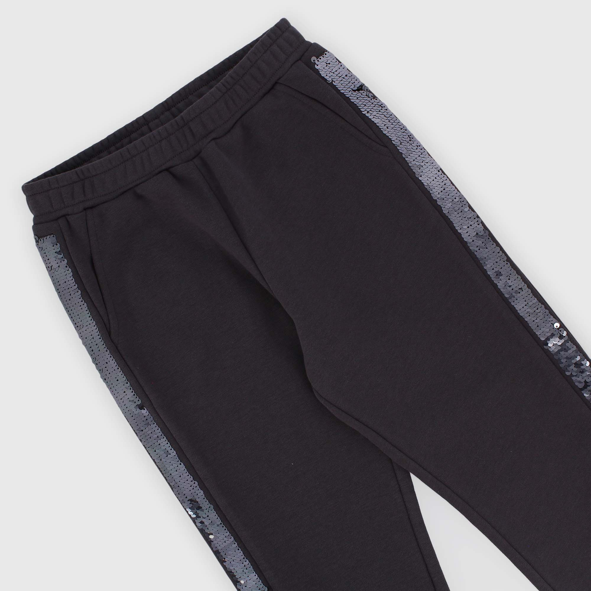 Hose aus Fleece mit elastischem Bund. Französische Taschen. Seitenstreifen aus Pailletten. Elastischer Saum.