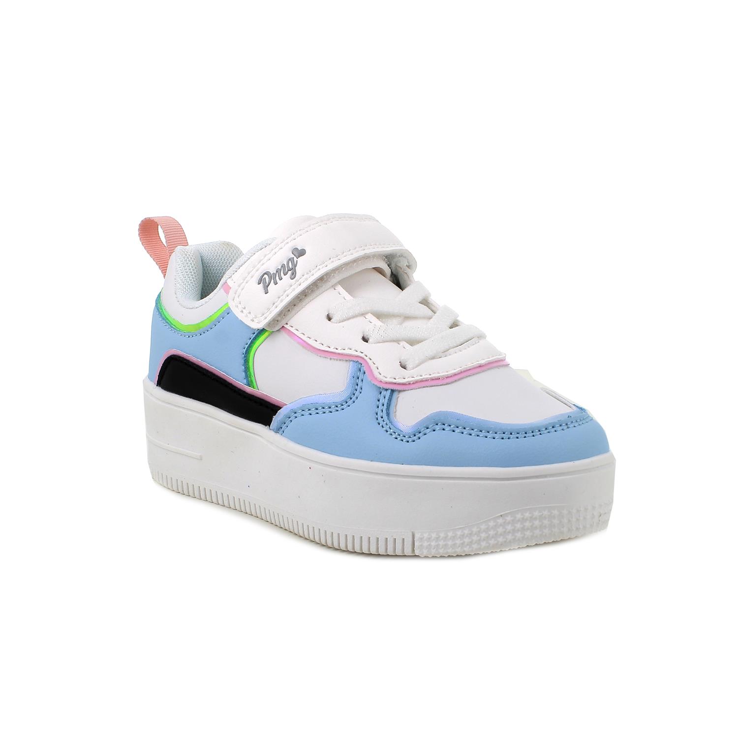 MÄDCHEN SNEAKER MIT KEILABSATZ HIMMELBLAU UND WEISS MIT VELCRO