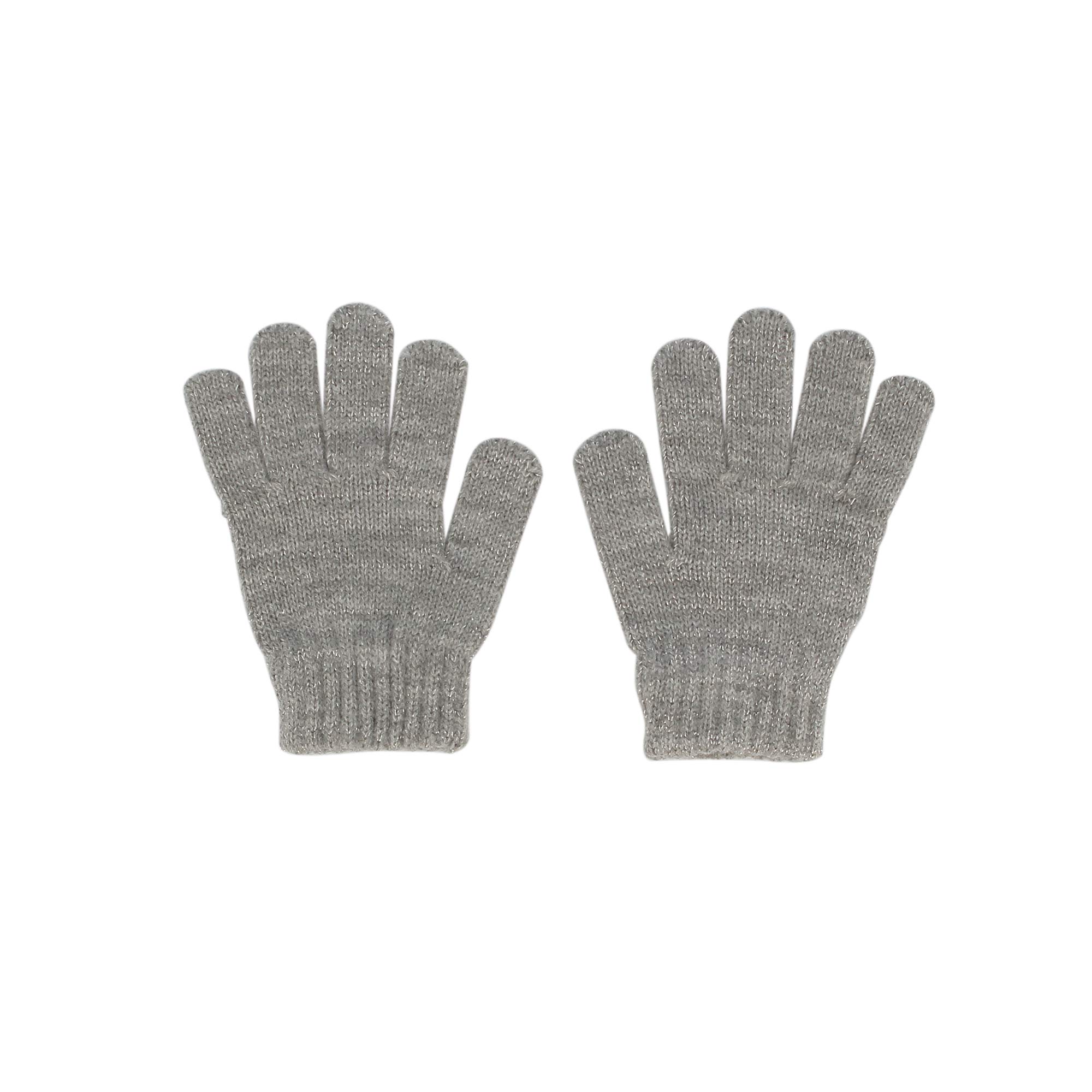 Gestrickte Handschuhe mit Lurexgarn und Rippenbündchen.