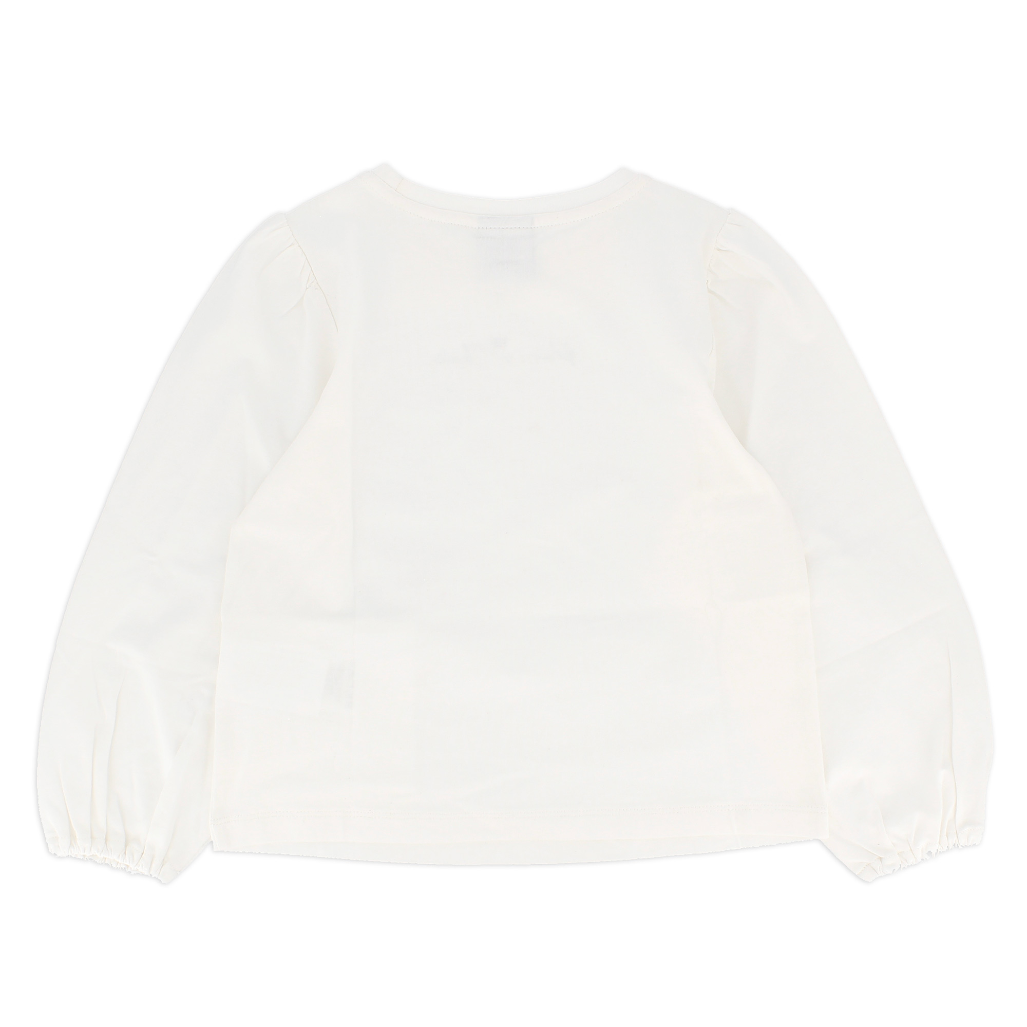 Jersey-T-Shirt mit Rundhalsausschnitt und langen Ballonärmeln. Druck mit Glitter-Schriftzug auf der Vorderseite