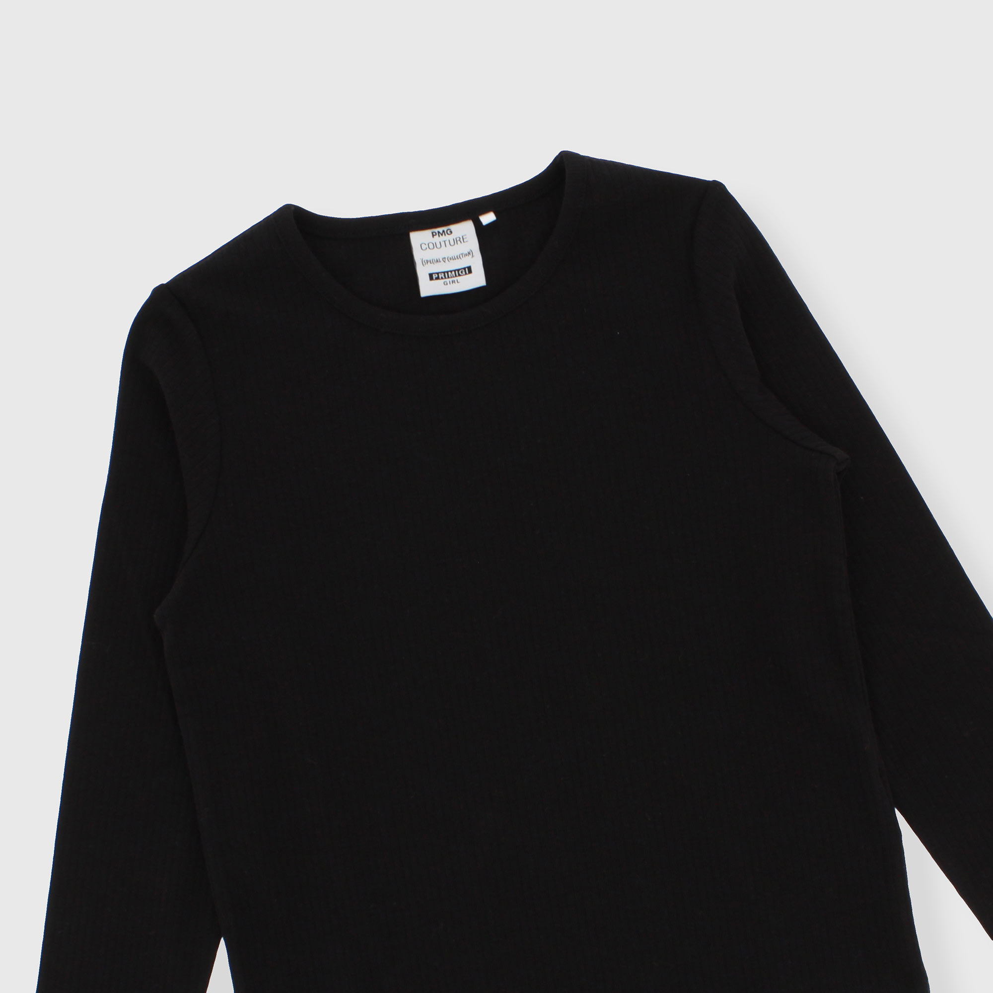 Maglietta a costine, girocollo, a maniche lunghe.