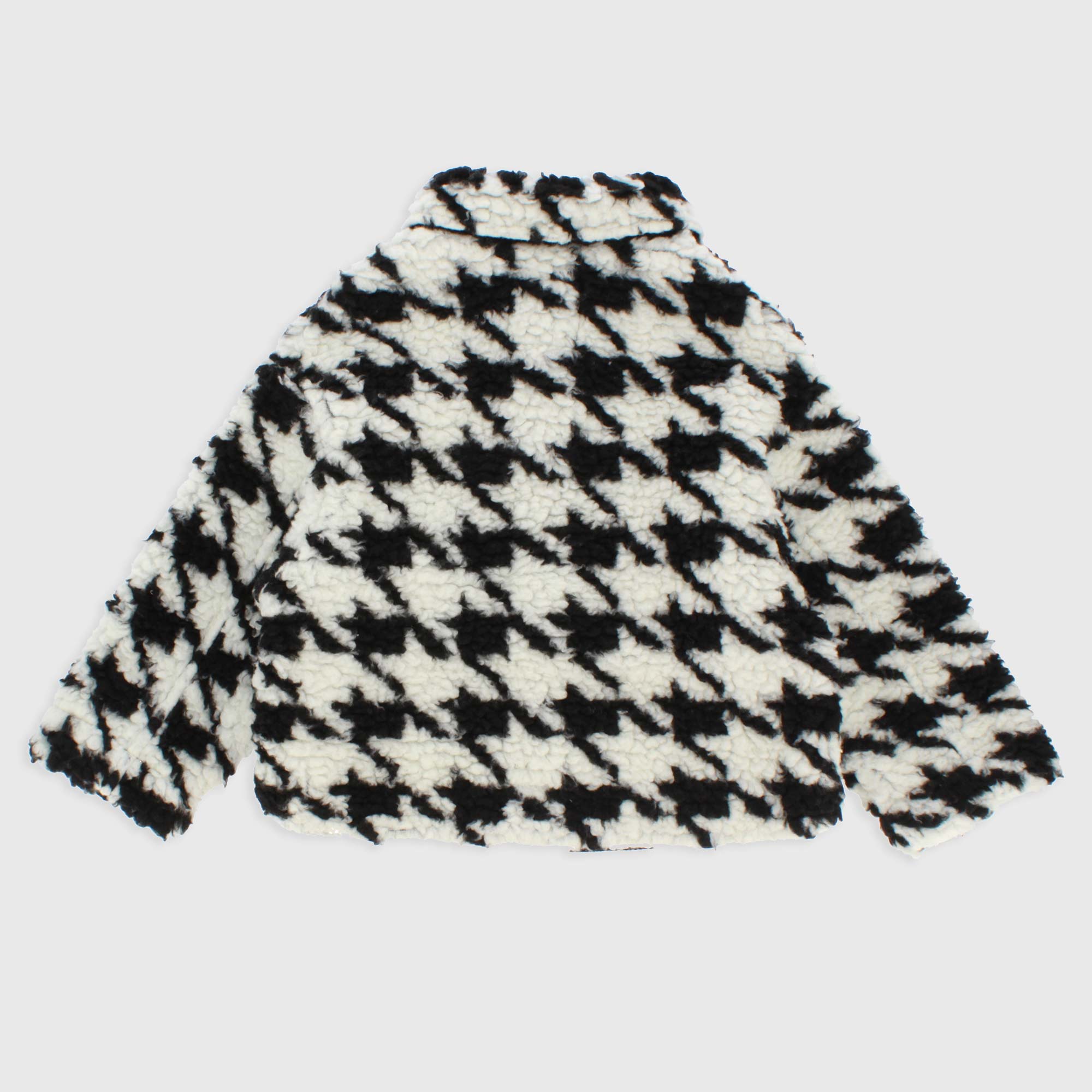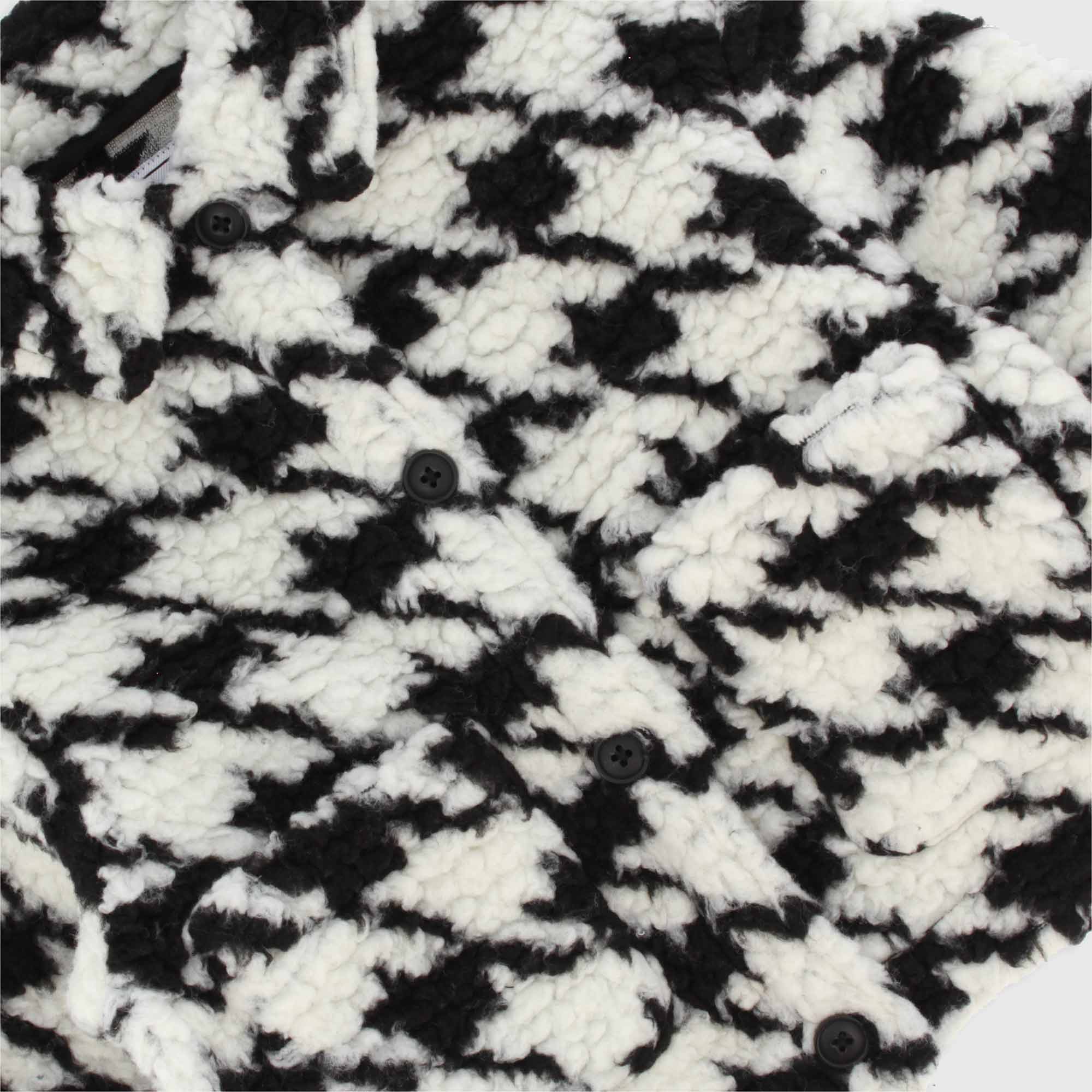 Jacke aus Kunstpelz mit Teddy-Effekt, Pied de Poule. Knopfleiste vorne. Aufgesetzte Taschen.