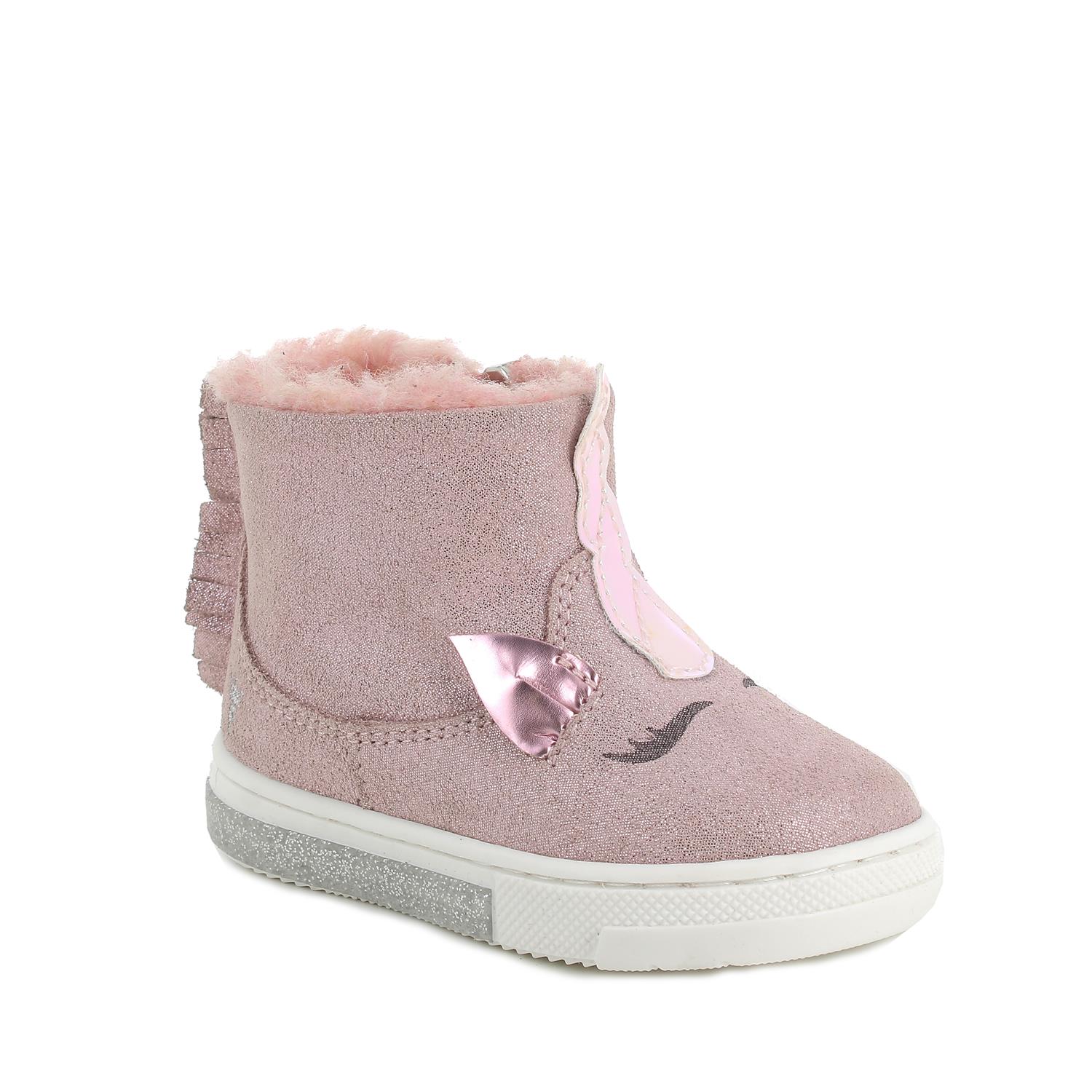 Maedchen-Stiefeletten aus Leder, rosa glitzer