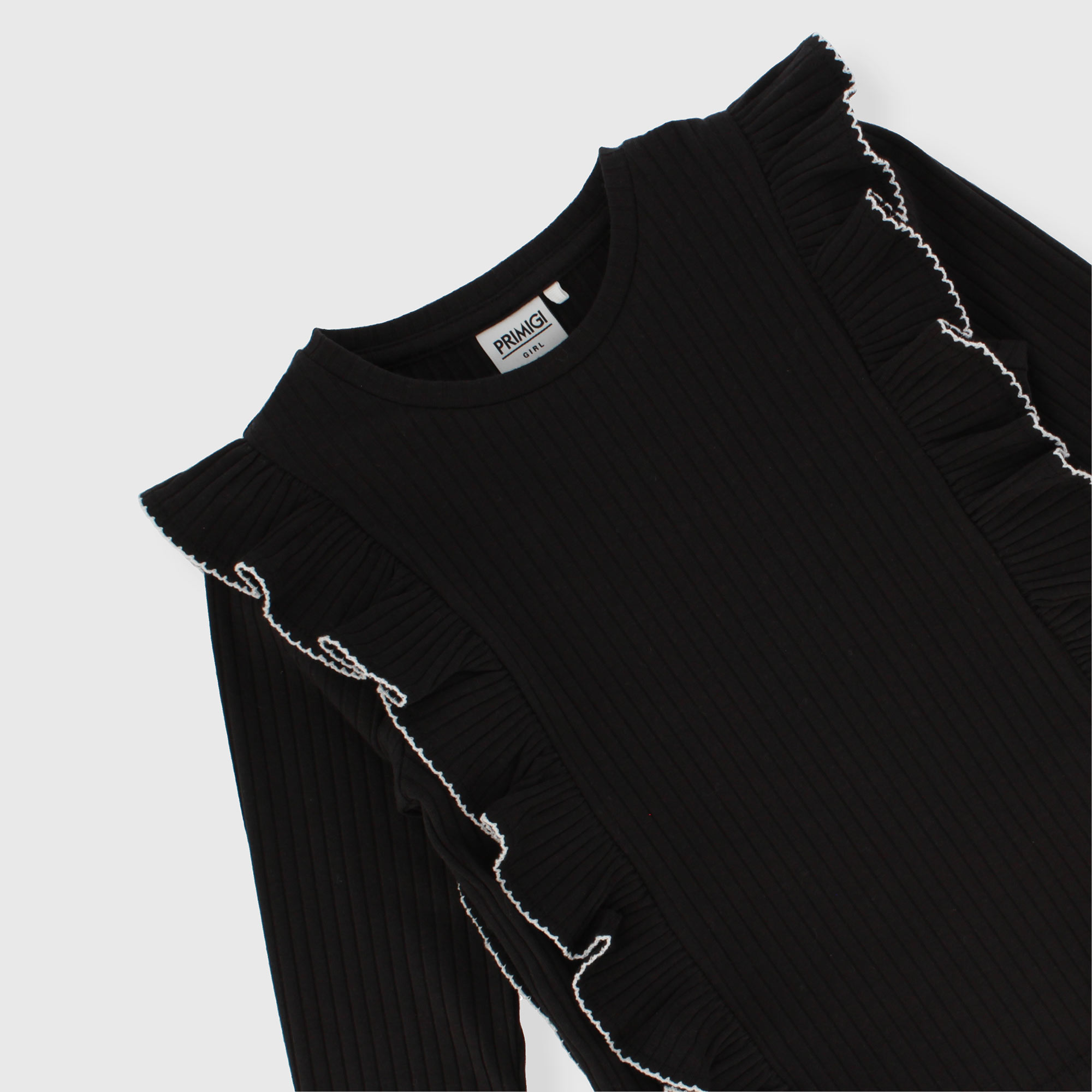 Maglietta in costina da bambina, NERO