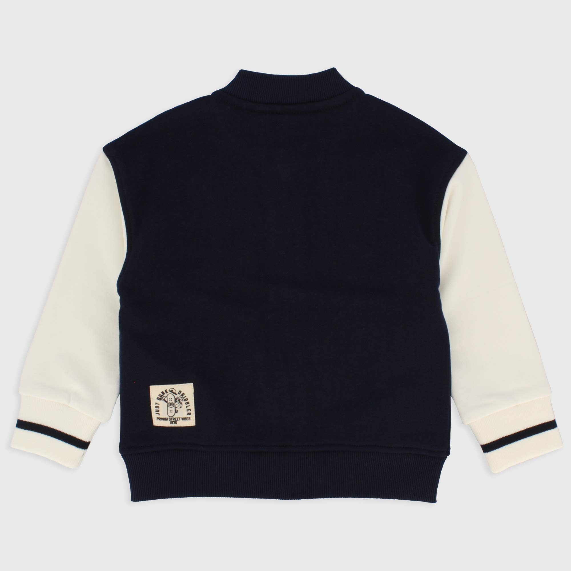 Langärmliges, offenes Sweatshirt im Bomber-Stil. Kragen und Bündchen gerippt. Reißverschluss und Frottee-Effekt-Patch auf der Vorderseite. Leistentaschen und Aufnäher mit Schriftzug auf der Rückseite.