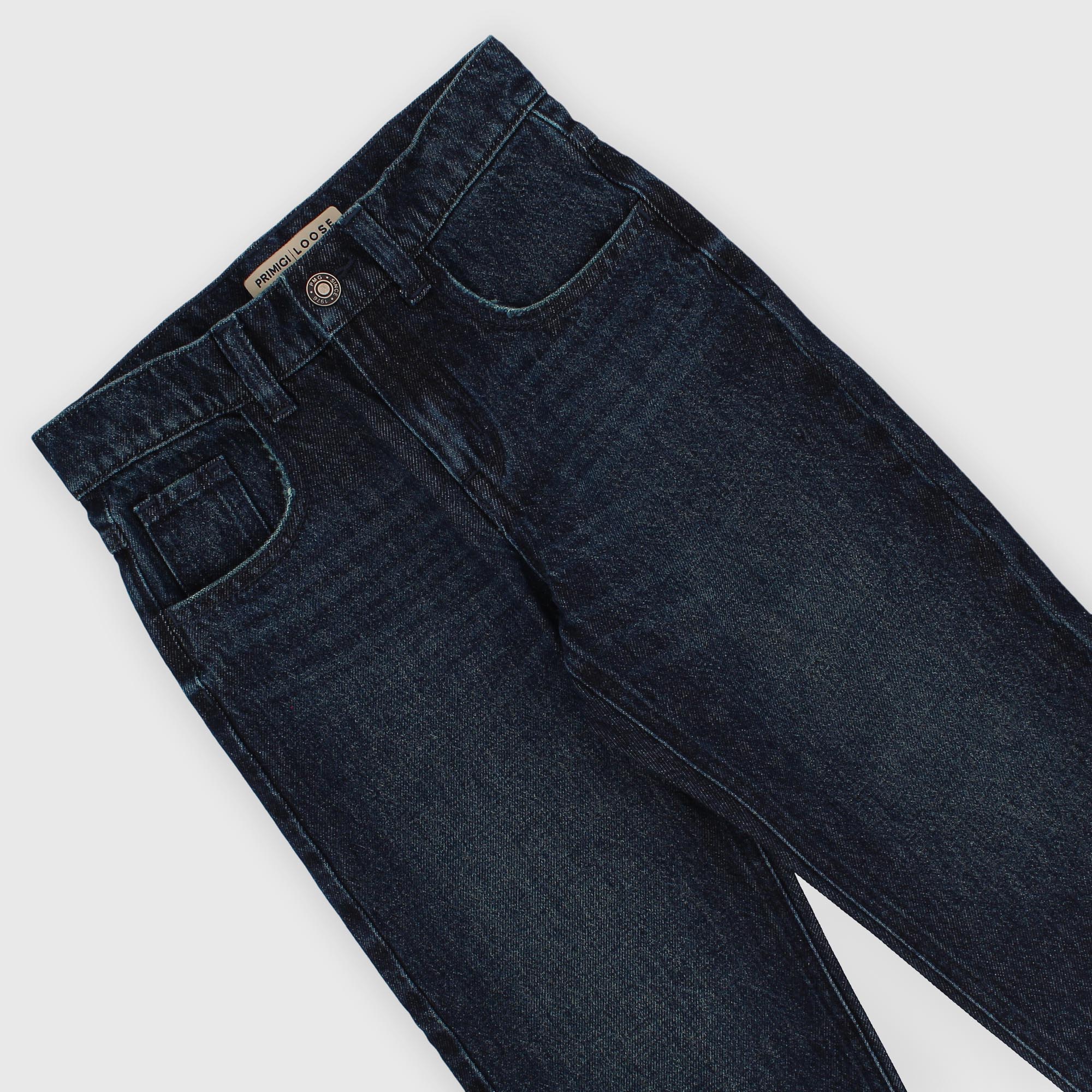 Jeans mit verstellbarem Bund innen. Verschluss mit Knopf und Reißverschluss. Fünf Taschen.